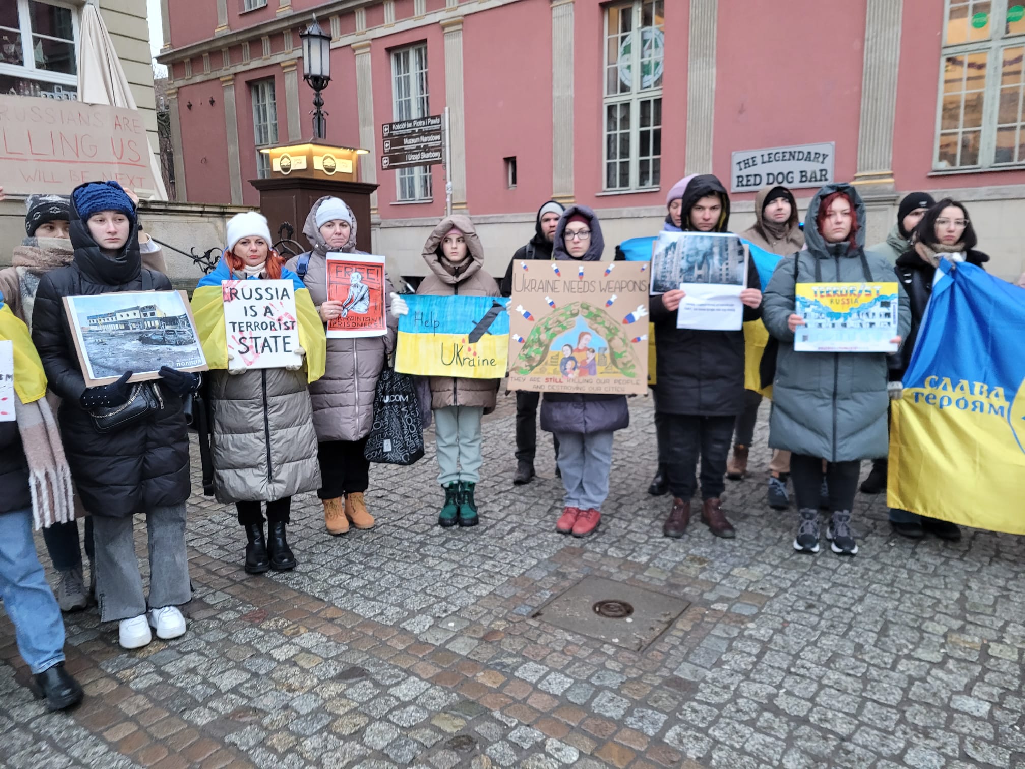 На головній площі понад 300 людей, серед яких представники Консульства України, українці та поляки, провели акцію, щоб привернути увагу до масованих і безпрецедентних обстрілів росією усієї України.