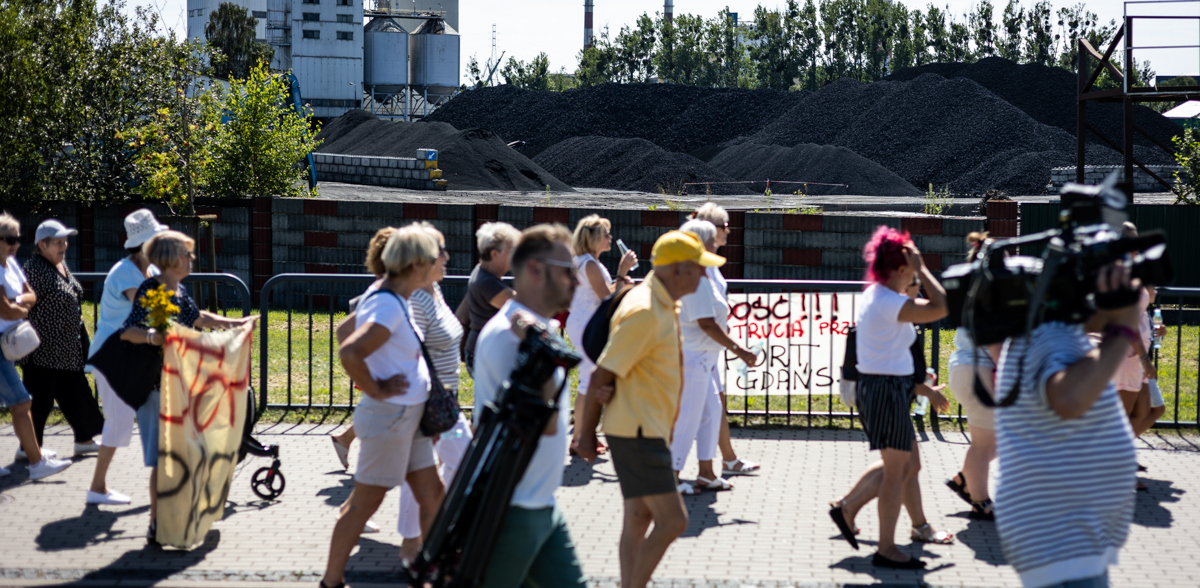 Понад рік у Гданському порту зберігається велика кількість вугілля, яке потім транспортують у вантажівках, які не завжди належним чином убезпечені. Йдеться про їх „негерметичність”. Мешканцям набридли проблеми, які створює вугільний пил, тому вони вирішили вдатися до такої форми протесту.