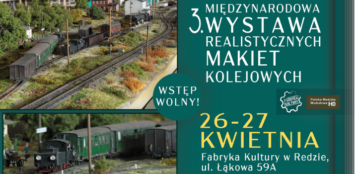 To będzie wydarzenie, jakiego w Polsce jeszcze nie było! W ostatni weekend kwietnia do redzkiej Fabryki Kultury już po raz trzeci przyjadą modelarze-realiści, tworzący makiety kolejowe w różnych skalach i rozmiarach. Tegoroczna edycja będzie jednak wyjątkowa – po raz pierwszy w Polsce zaprezentowane zostaną prace mistrzów modelarstwa z Włoch, Niderlandów, Belgii, Szwajcarii i Luksemburga. Nie zabraknie także makiet z Niemiec i Polski. Wstęp wolny!