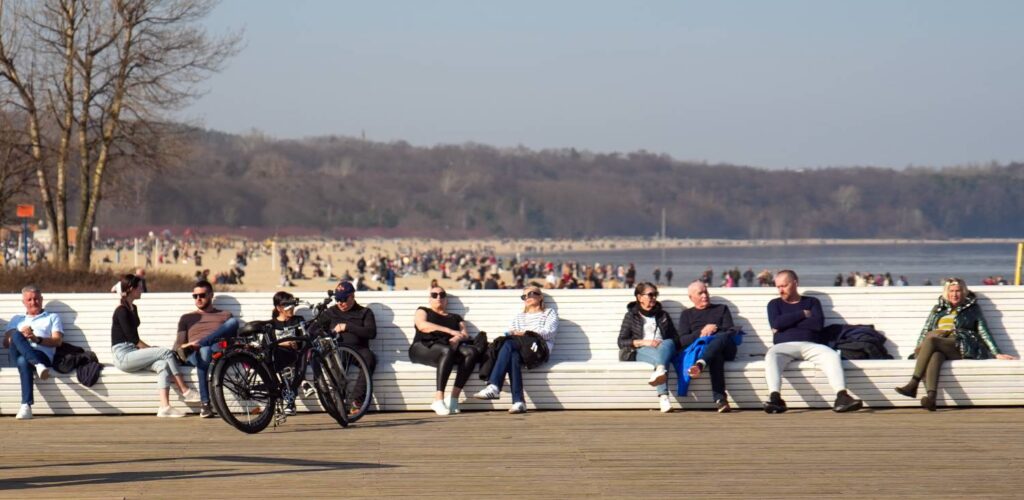Molo w Sopocie. Spacerowicze korzystają z wiosennej aury. Pogoda, słońce
