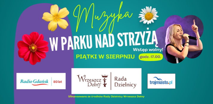 Rada Dzielnicy Wrzeszcz Dolny zaprasza na kolejną edycję letnich koncertów Muzyka w Parku Nad Strzyżą, ul. Konrada Leczkowa 27, we wszystkie piątki sierpnia – 1, 8, 15, 22 i 29. 08. 2025 r. godz. godz. 17.00 – 18.00.
