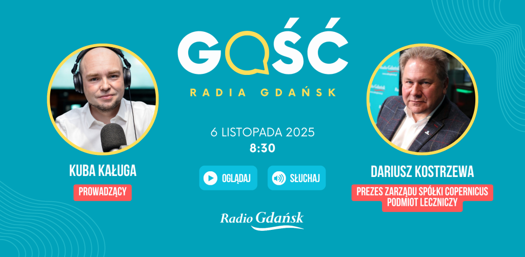 08:30 – Gość Radia Gdańsk Gość: Dariusz Kostrzewa, prezes zarządu spółki Copernicus Podmiot Leczniczy, Prowadzący: Kuba Kaługa,