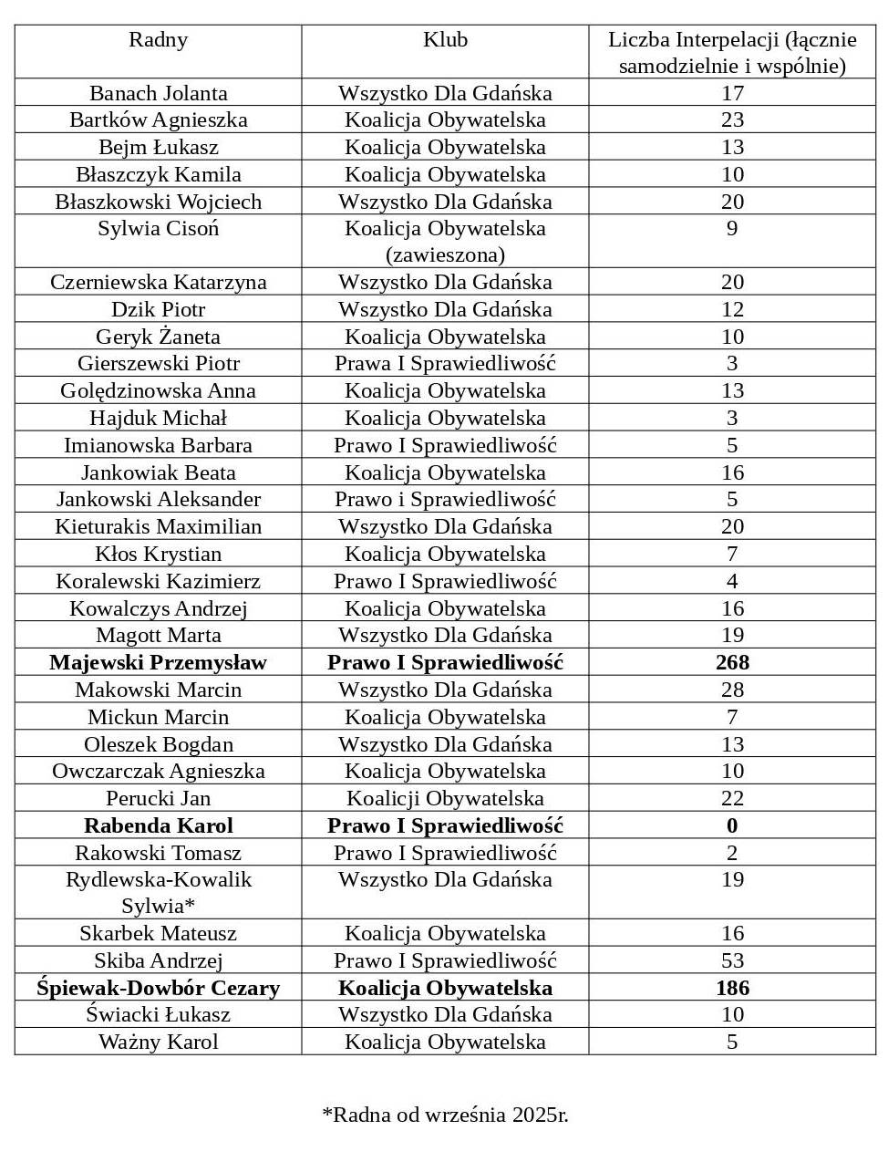 Z kolei najmniej aktywnym pod kątem interpelacji radnym okazał się doradca prezydenta RP Karol Rabenda. Radny Prawa i Sprawiedliwości nie złożył ani jednej interpelacji.