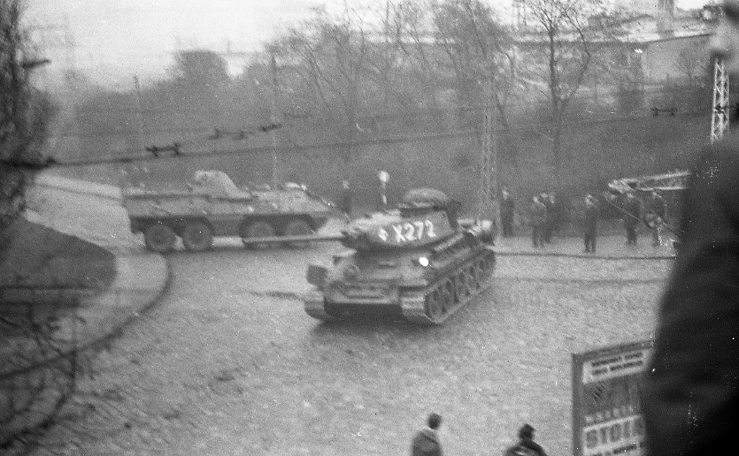 Pojazdy wojskowe stojące na skrzyżowaniu ul. Czerwonych Kosynierów i 10-go Lutego (fot. IPN)