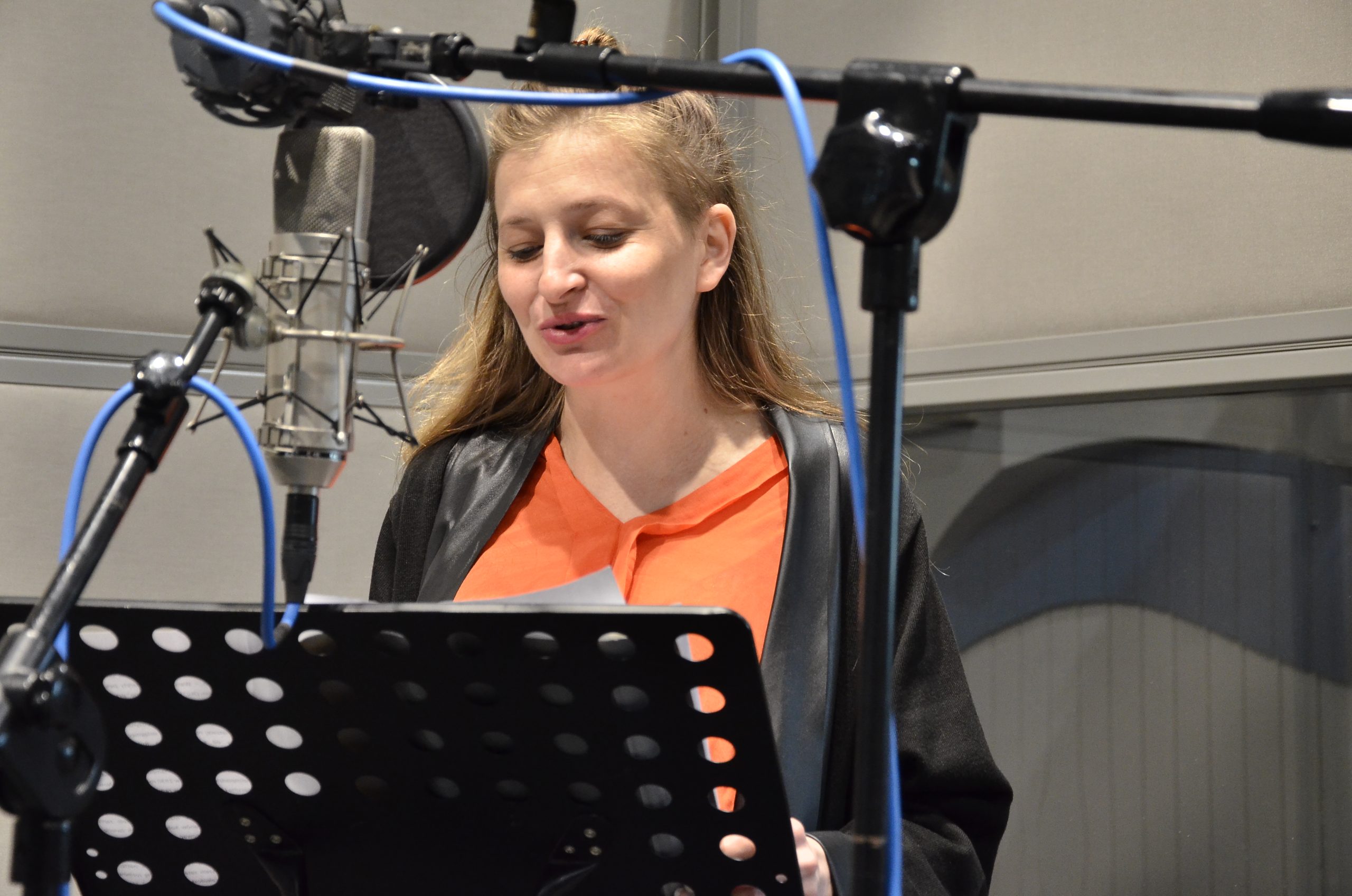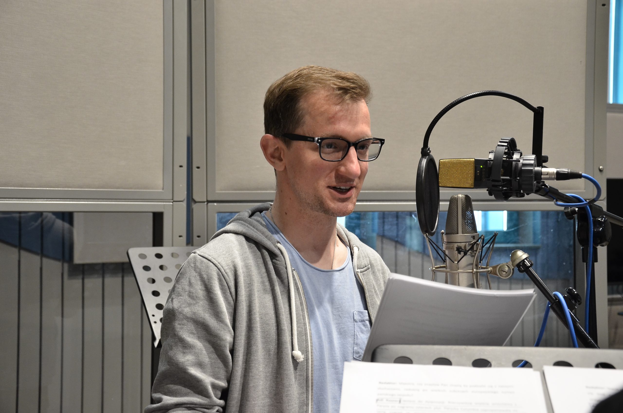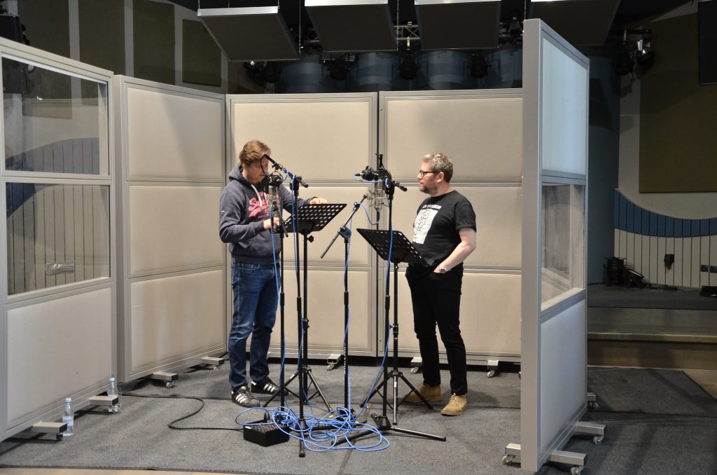 Z naszą dziennikarką rozmawiał również Jacek Puchalski, który zajmuje się realizacją akustyczną słuchowiska. – To trudne zadanie dla aktorów, bo trzeba przenieść się głosami do lat 30. i wyobrazić sobie, jakie mogło być wtedy radio. Mniej więcej o tym będzie to słuchowisko – mówił.