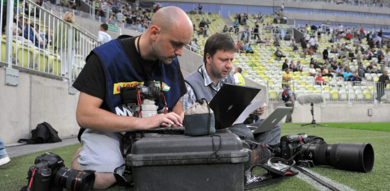 Jest uczestnikiem najważniejszych sportowych wydarzeń, ale zazwyczaj nikt na niego nie patrzy. Dopiero później ludzie patrzą na to, co stworzył. Wojciech Figurski to fotoreporter z krwi i kości. Nie znosi się nudzić, więc kiedy wszyscy działają zgodnie z szablonem, on wytycza nowe szlaki. Kładzie się pod stołem, turla w sali konferencyjnej, szuka miejsca pod sufitem.