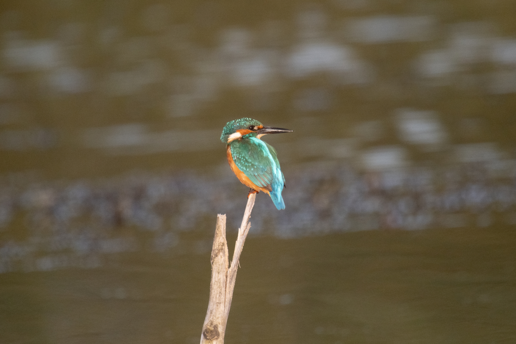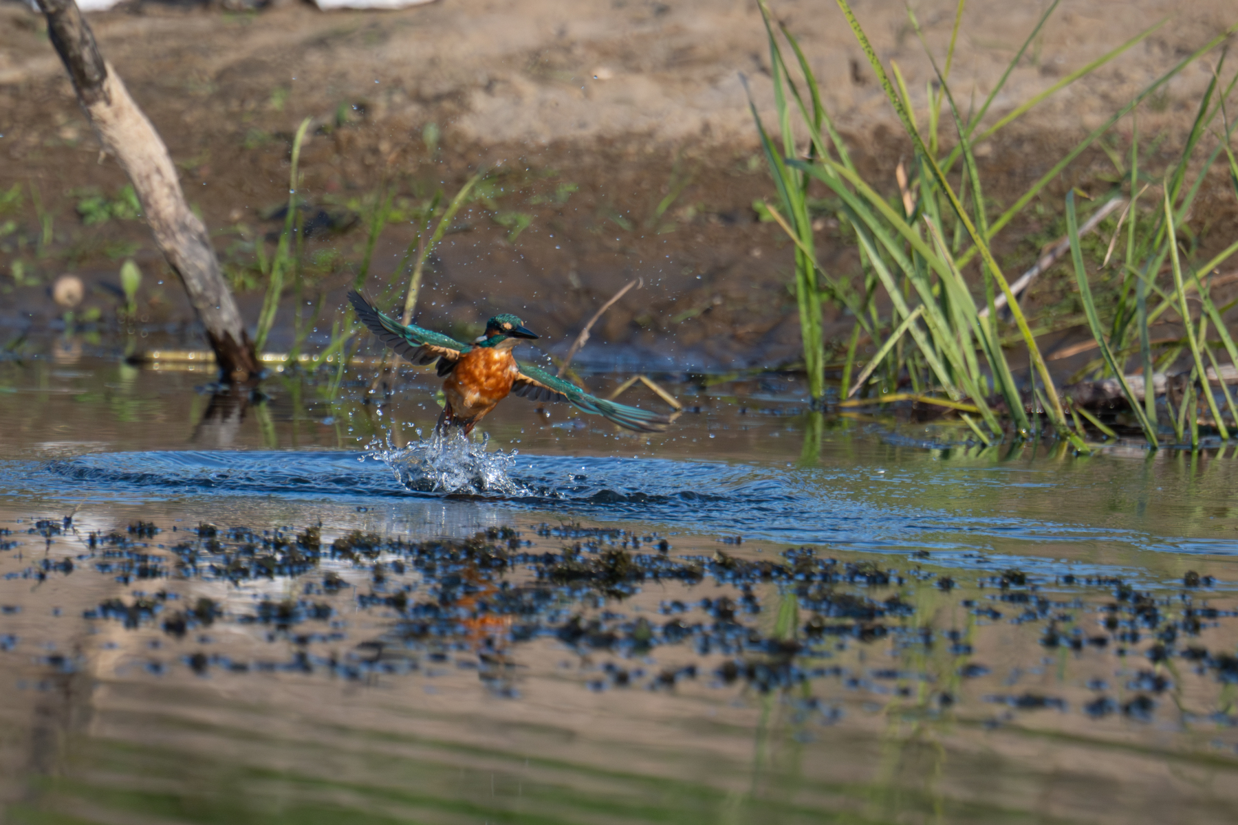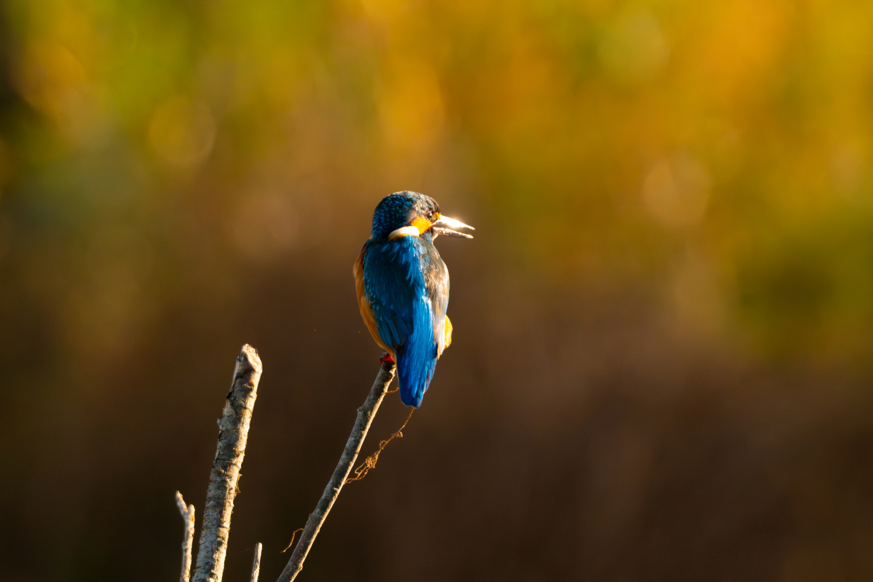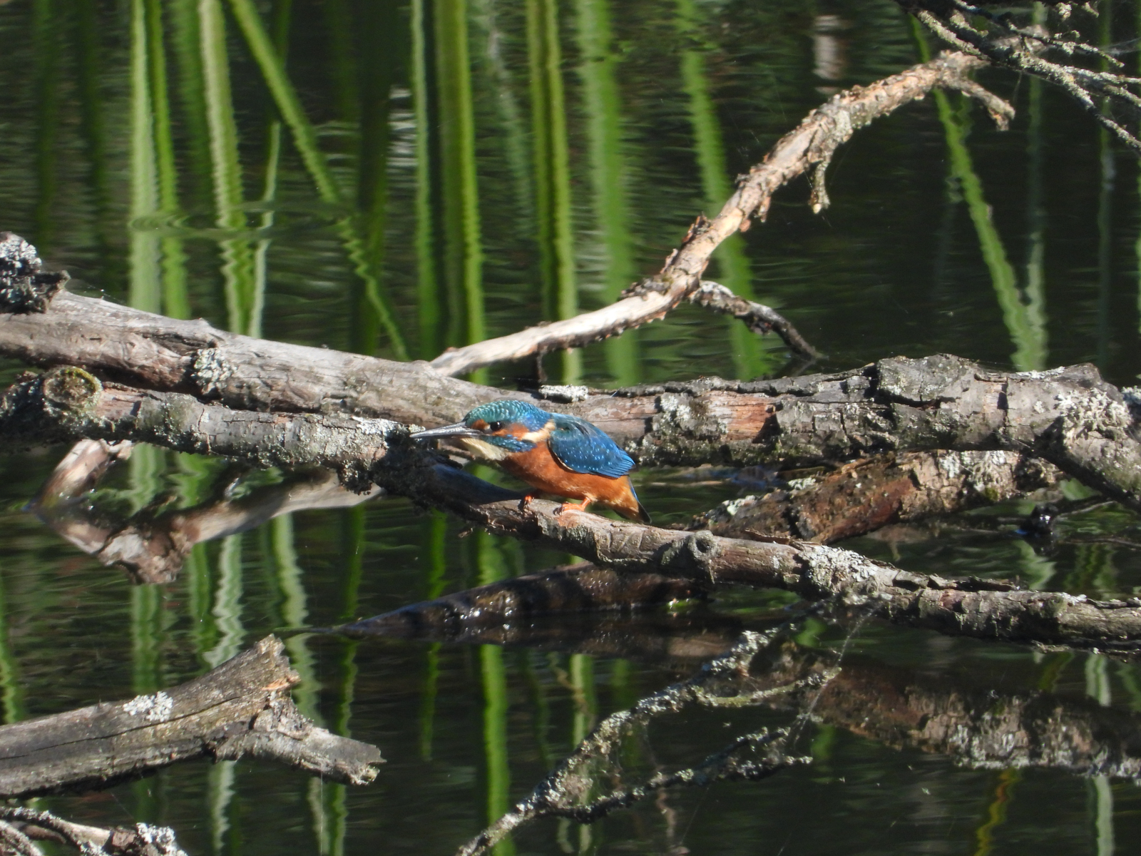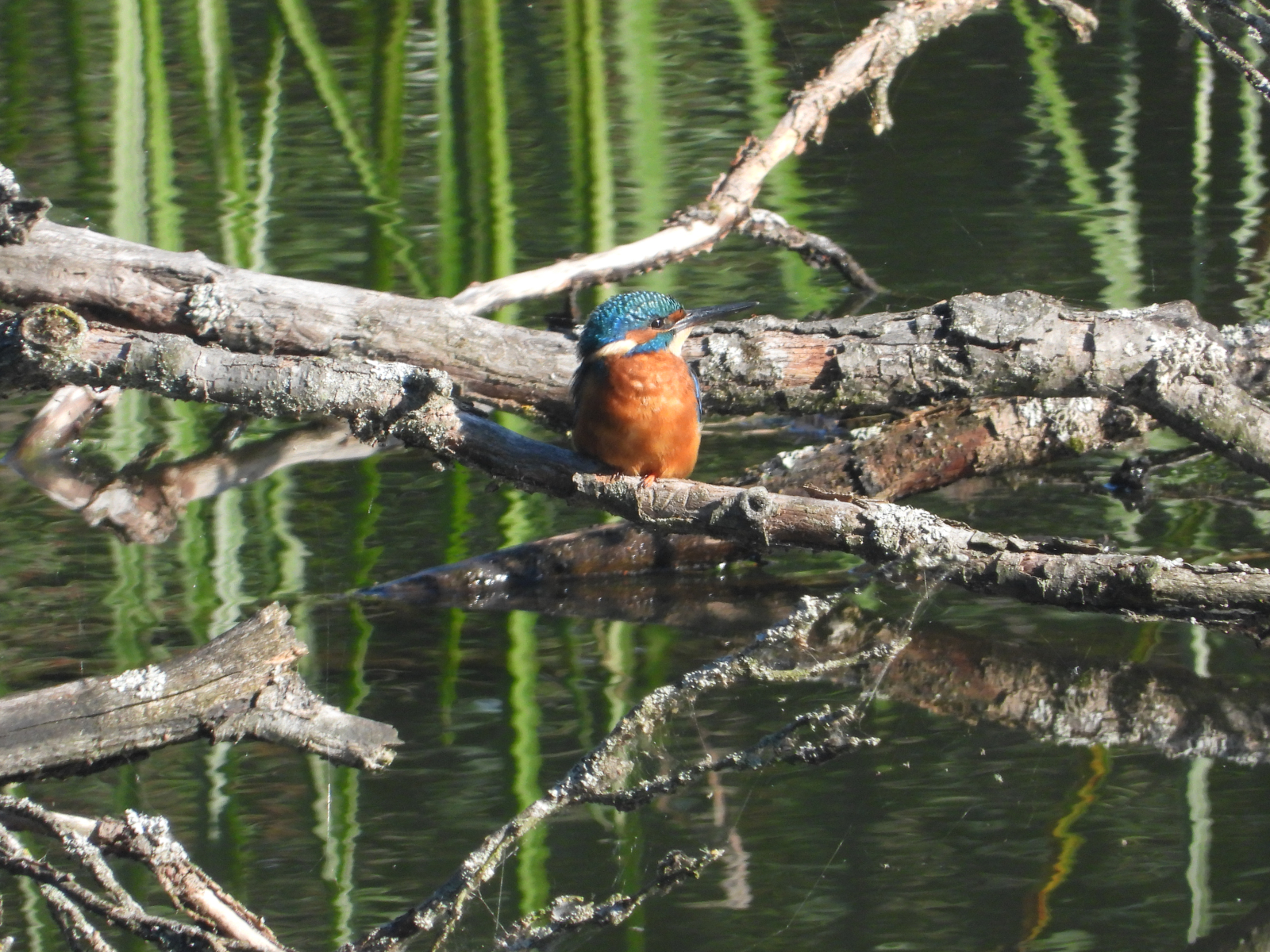 Drugie zdjęcie ukazuje zimorodka zwyczajnego – ptaka o intensywnych barwach, trudnego w obserwacji i uchwyceniu. Ujęcie powstało w momencie, gdy ptak usiadł na gałęzi zanurzonej w wodzie. Ta fotografia dr. Brzezińskiego stała się symbolem cierpliwości i gotowości na jeden, właściwy moment. Nie powstałaby bez czasu, skupienia, oczekiwania i precyzji.