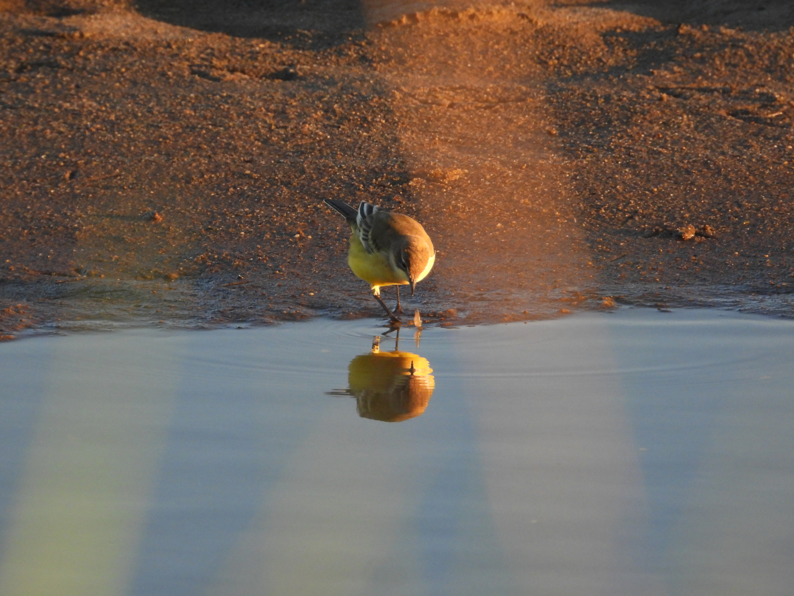 Pierwsze z nich przedstawia pliszkę żółtą uchwyconą najpewniej w chwili poszukiwania pożywienia. Fotografia emanuje subtelnością i spokojem. Światło układa się miękko na tafli wody, a delikatny refleks sprawia wrażenie, jakby ptak przeglądał się w jej powierzchni. To właśnie przez tę grę światła i chwili dr Brzeziński nadał fotografii tytuł: „Lustereczko, powiedz przecie” – tytuł, który nie opisuje, lecz dopowiada emocje.