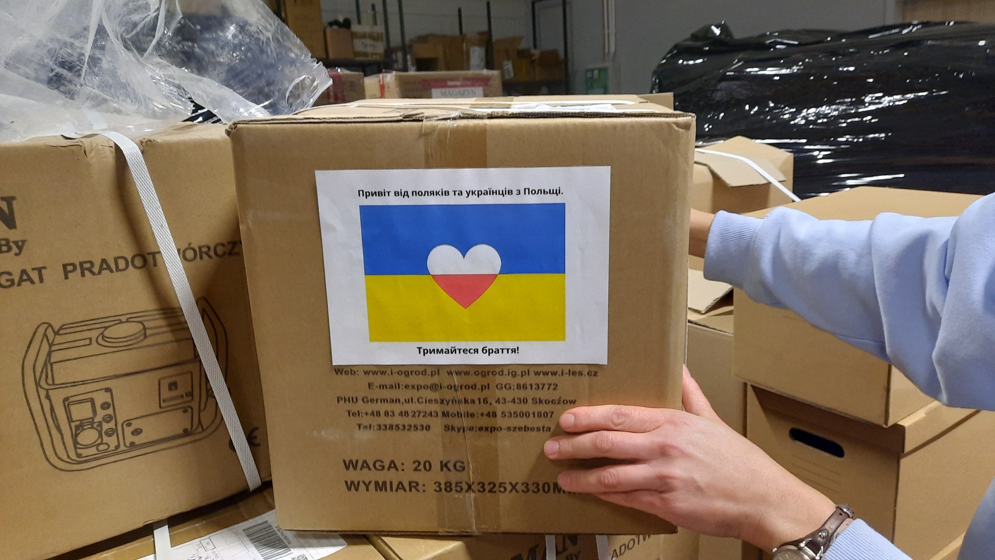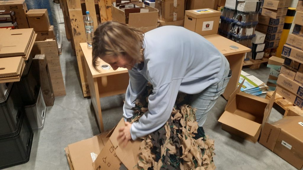 Wolontariuszka pokazuje też siatkę maskującą, którą uplotły panie z Chłapowa. – Mamy swoich 50 żołnierzy, którym regularnie pomagamy. Należą do Brygady Piechoty Morskiej, Batalionu Gruzińskiego i Służb Specjalnych, ale to niejedyna pomoc przygotowana przez wolontariuszy i mieszkańców Gdańska. Przez ostatnie dwa dni w jednym z magazynów w Kokoszkach kilkunastu wolontariuszy z Polski i Ukrainy przygotowywało to, co dotarło już na granicę. Ostatni transport, w którym pojechały generatory i świece okopowe, wyruszył z Gdańska w listopadzie. Dziś będziemy tu siedzieć pewnie aż do skutku, może całą noc. Musimy to wszystko spakować. Jedzie pomoc dla ludności cywilnej i żołnierzy – zaznacza Ola.
