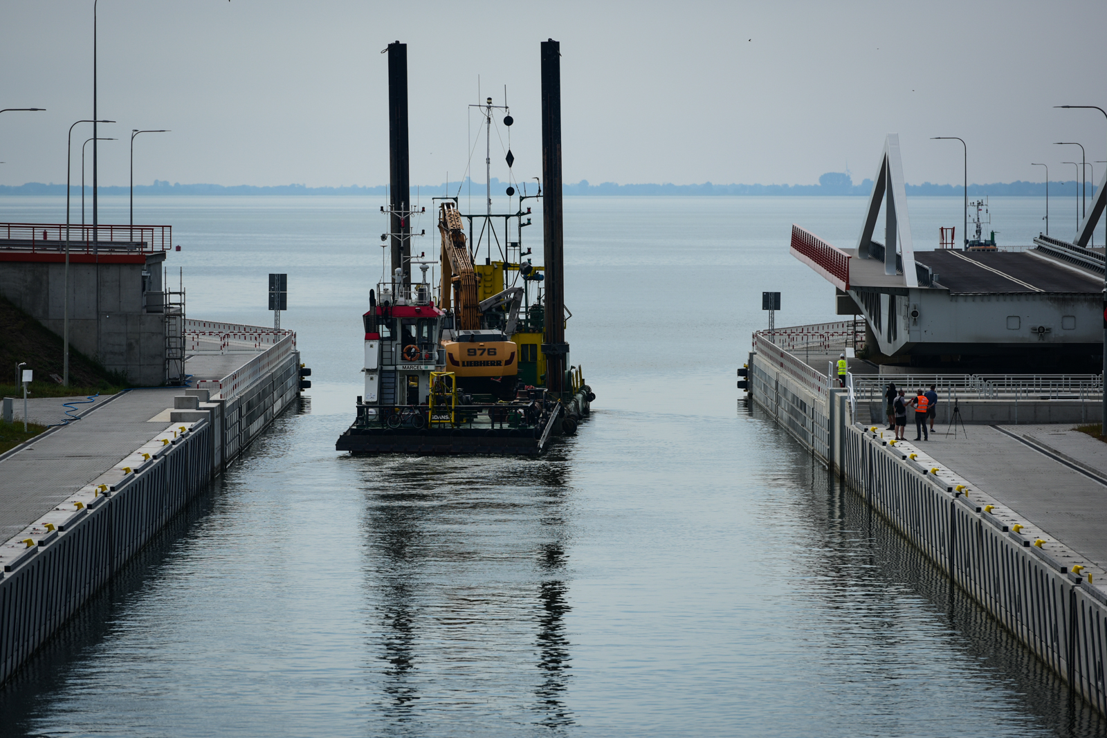 – Trwają prace związane z nadrzędnym systemem sterującym, czyli całym tym systemem, który będzie odpowiadał za sprawne przekierowanie ruchu z jednego mostu na drugi, co jest związane z możliwością wejścia do śluzy i wyjścia z niej – informuje.