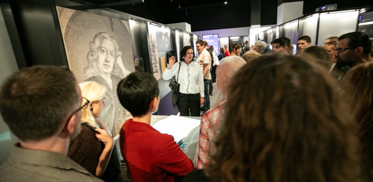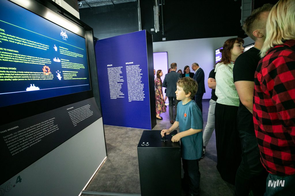 Wystawa zaczyna się w starożytności, ale poprzez wieki zmierza ku współczesności i obecnych mitom, na przykład wykorzystywanym przez środowiska sprzeciwiające się szczepieniom. Można też zobaczyć podróbki znanych firm i na dotykowych ekranach odkrywać, np. jak propaganda rosyjska pokazywała wojnę w Ukrainie. Interaktywna przestrzeń z grami pozwala wcielić się w internetowego trolla.