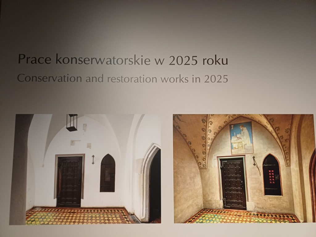 Jedno z pomieszczeń poświęcono historii konserwacji zamku – od XIX wieku po współczesność. Archiwalne dokumenty, fotografie, narzędzia oraz wyniki nowoczesnych analiz ukazują wielopokoleniowy wysiłek specjalistów, dzięki któremu malborski zamek przetrwał do naszych czasów.