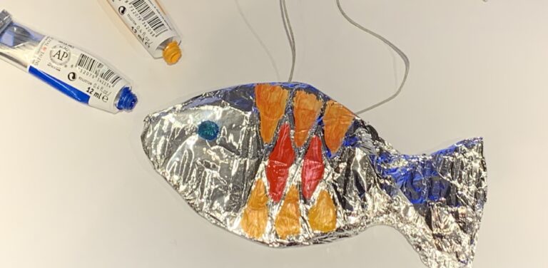 Wykonaną własnoręcznie ozdobę w kształcie rybki może powiesić na choince (Fot. Radio Gdańsk)
