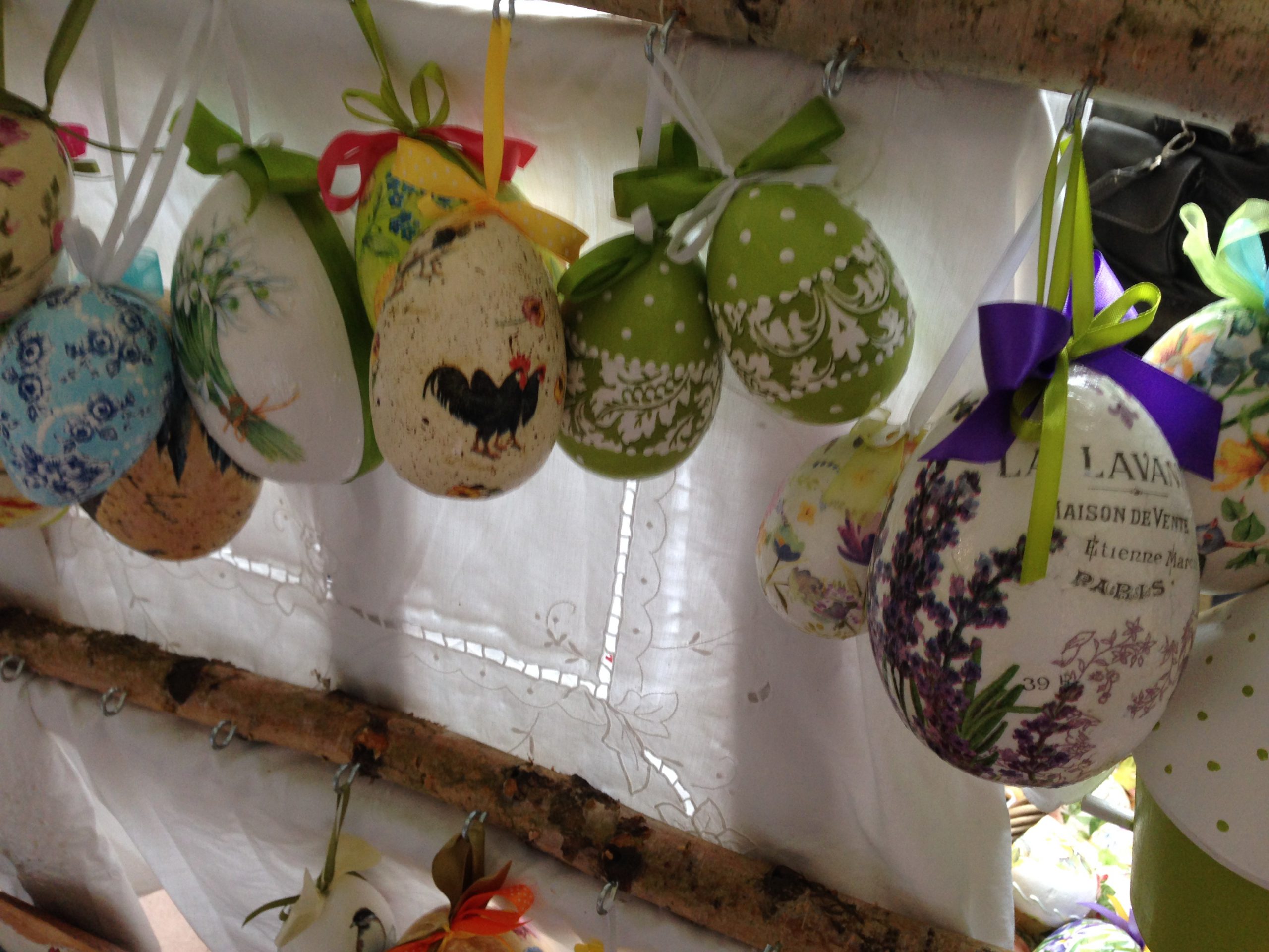 Typowo wielkanocne ozdoby hobbistycznie tworzy za to Alicja Sykut-Zięba. Na jej stoisku można kupić małe ozdobne jajeczka, jak i obrazy na deskach wykonane w technice decoupage. Jak tłumaczy, to praca wymagająca skupienia i cierpliwości. – Najpierw jadę do tartaku, wybieram deski z drzew liściastych. Suszę i szlifuję je sama, potem zagruntowuję, przyklejam wzór i lakieruję. Na końcu przyczepiam zawieszkę, opowiada.