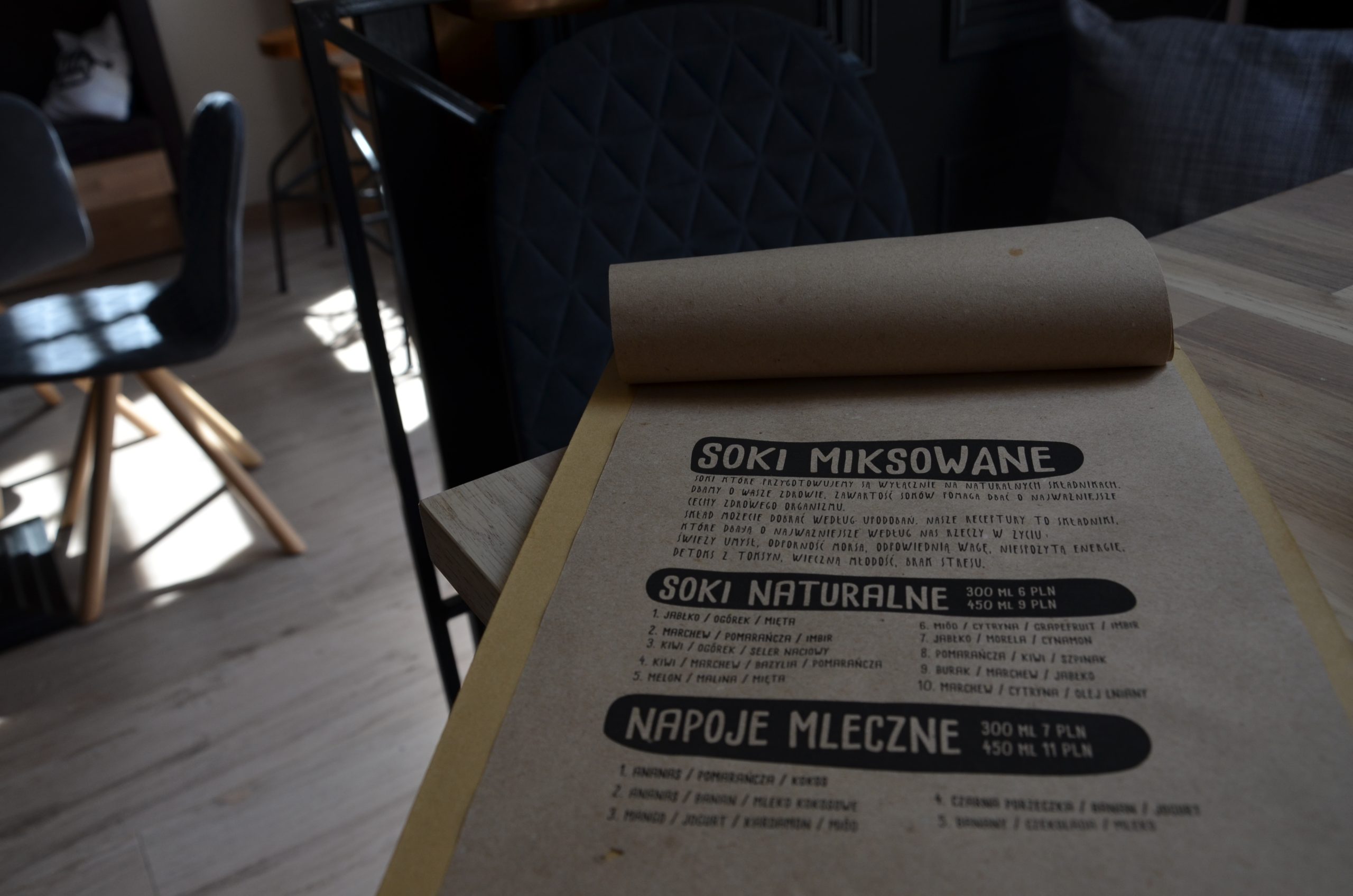 W karcie znajdziemy też robione na miejscu kanapki, świeże bułki z dodatkami, tarty, zupy i ciasta. Wszystko, jak widzimy, sugeruje formułę śniadaniowo-lunchową i chyba na tym właśnie powinna się Anima Cafe skupić. Choć właściciele myślą też o wieczornych godzinach funkcjonowania swojej kawiarni. Wszystko wyjdzie w praniu. Mi na razie to miejsce kojarzy mi się z przestrzenią, do której warto zajść w gorący dzień, żeby ochłodzić się przy przepysznym, świeżo miksowanym soku i po prostu na moment się wyciszyć. A, kawę też mają znakomitą!