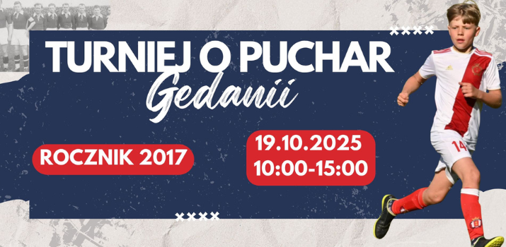 Gdański Klub Sportowy Gedania 1922 zaprasza do kibicowania najmłodszym adeptom piłki nożnej na Turnieju o Puchar Gedanii dla rocznika 2017. Turniej odbędzie się w niedzielę 19 października 2025 r., na obiektach Gedanii w Gdańsku przy al. Gen. J. Hallera 201, w godzinach od 10.00 do 15:00.