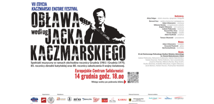 VII edycja Kaczmarski Encore Festival odbędzie się w Europejskim Centrum Solidarności w Gdańsku, 14 grudnia 2025 r., o godz. 18.00.