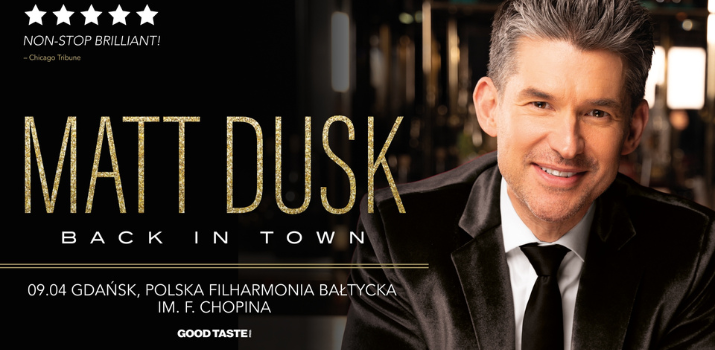 Kanadyjski wokalista i kompozytor, zdobywca platynowych wyróżnień wraca do Polski! Matt Dusk, wraz z końcem marca, wyruszy w wyczekiwaną trasę koncertową „Back In Town” i odwiedzi aż 13 polskich miast. Uwielbiany przez polską publiczność artysta zagra swoje największe przeboje i amerykańskie klasyki w popowo-jazzowo-bluesowym stylu, za który pokochał go świat. Koncert w Gdańsku odbędzie się 9 kwietnia o godz. 20:00, w Polskiej Filharmonii Bałtyckiej.