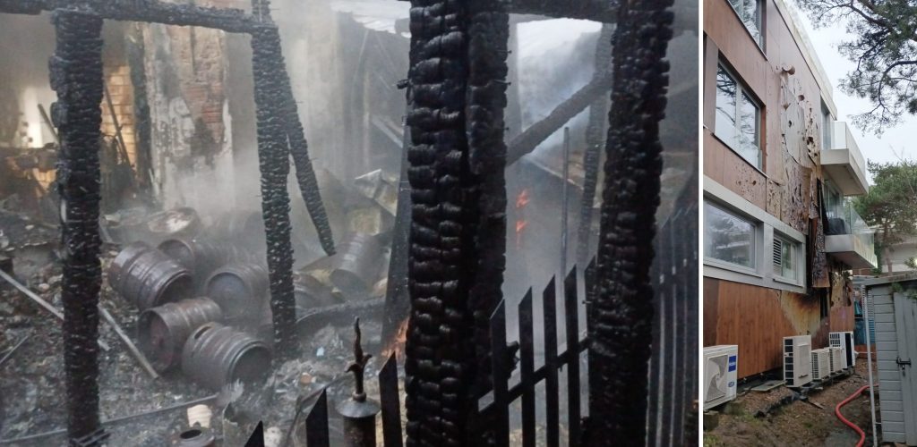 Pożar lokalu gastronomicznego w Juracie. Ogień zniszczył też elewację sąsiedniego budynku