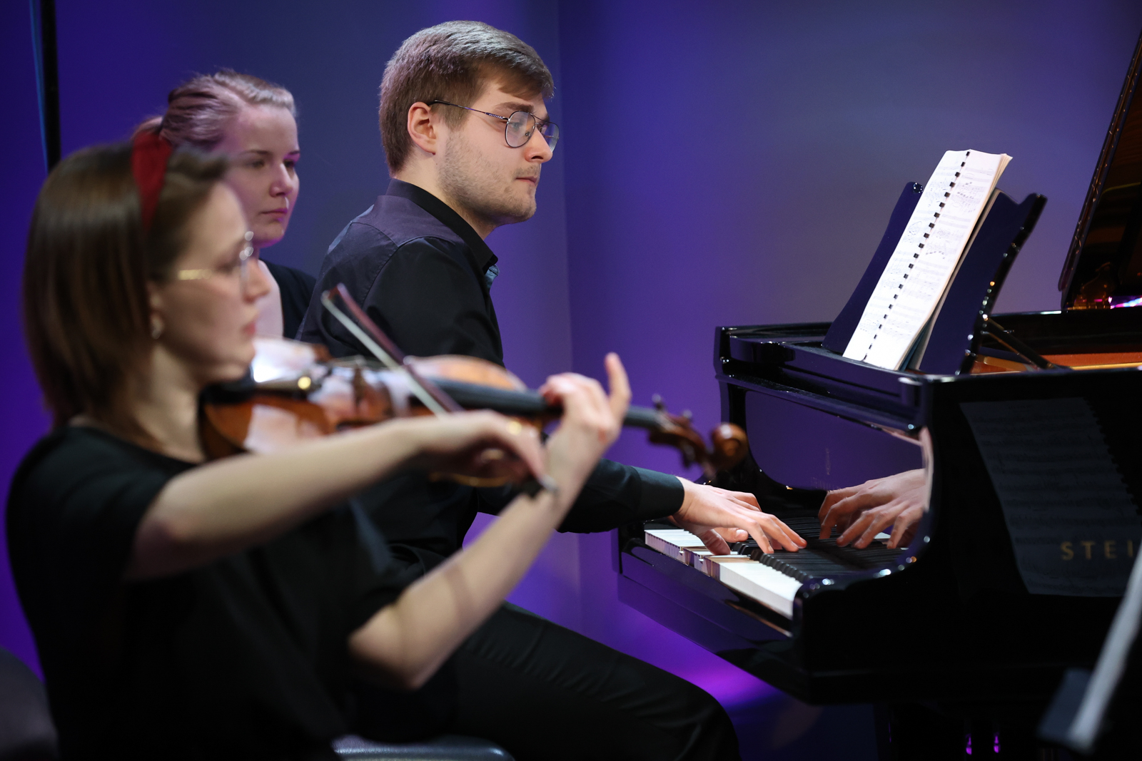 Nord Piano Trio składa się z Aleksandry Rybskiej (skrzypce), Poliny Voitsykhovskiej (wiolonczela) i Mateusza Maciołka (fortepian) z klasy kameralistyki prof. dr hab. Anny Prabuckiej-Firlej i dr hab. Roberta Kwiatkowskiego, prof. Akademii Muzycznej. Zagrają dla naszych słuchaczy część pierwszą („Allegro energico”), drugą („Presto non asai”), trzecią („Andante grazioso”) i czwartą („Allegro molto”) „Trio fortepianowego c-moll op. 101” Johannesa Brahmsa.