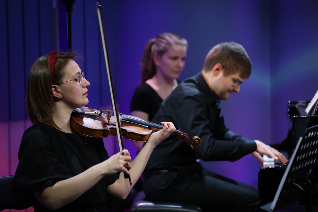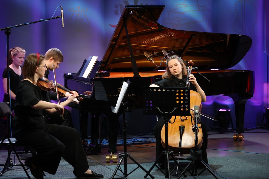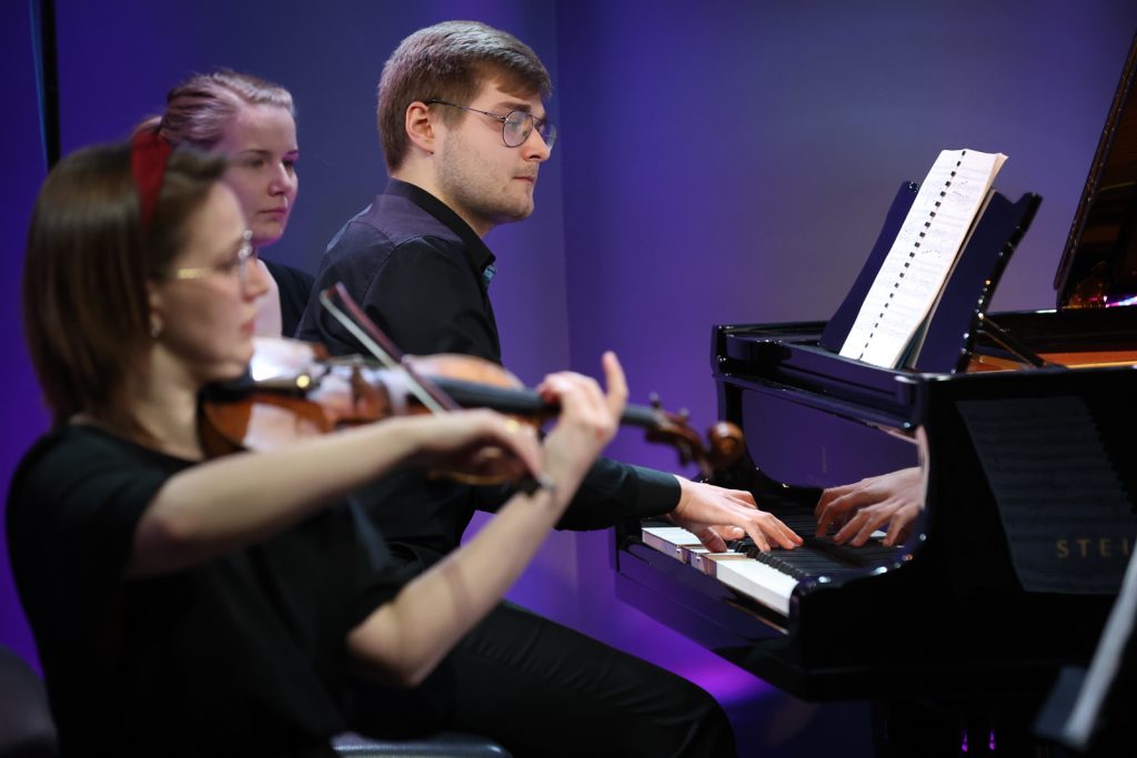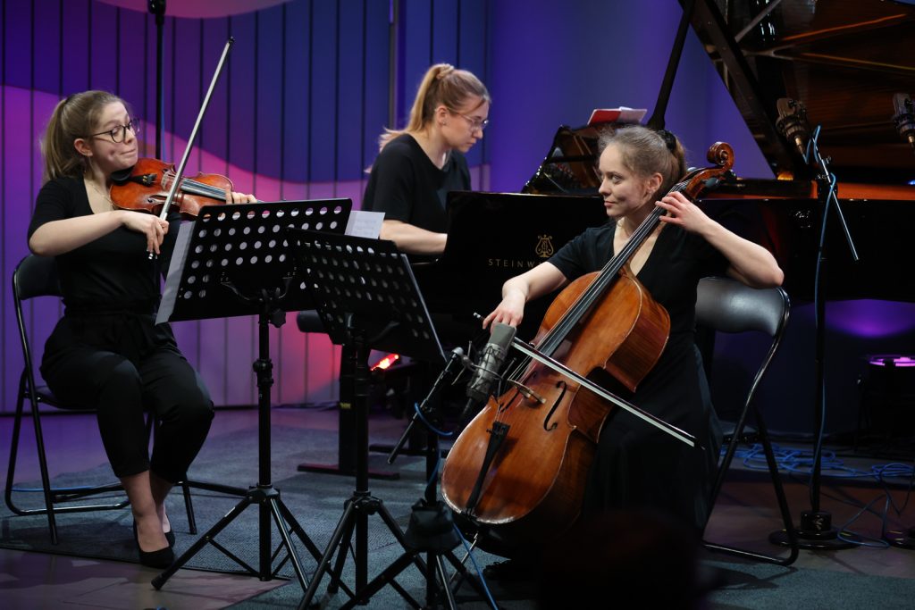 Nord Piano Trio składa się z Aleksandry Rybskiej (skrzypce), Poliny Voitsykhovskiej (wiolonczela) i Mateusza Maciołka (fortepian) z klasy kameralistyki prof. dr hab. Anny Prabuckiej-Firlej i dr hab. Roberta Kwiatkowskiego, prof. Akademii Muzycznej. Zagrają dla naszych słuchaczy część pierwszą („Allegro energico”), drugą („Presto non asai”), trzecią („Andante grazioso”) i czwartą („Allegro molto”) „Trio fortepianowego c-moll op. 101” Johannesa Brahmsa.
