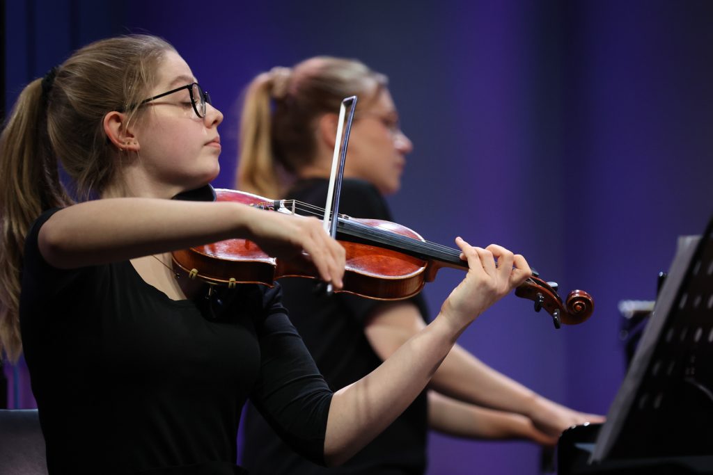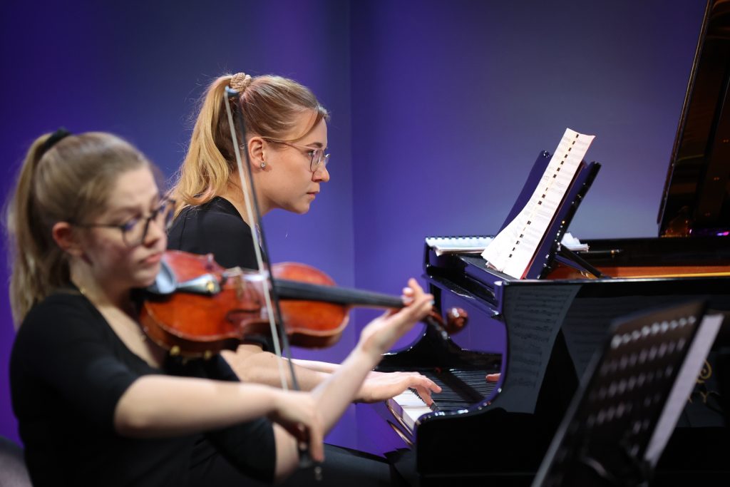 W skład Madame Piano Trio wchodzą Kornelia Huk (skrzypce), Natalia Wicka (wiolonczela) i Marta Misztal (fortepian) z klasy kameralistyki dr hab. Bogny Czerwińskiej-Szymuli, prof. Akademii Muzycznej i dr hab. Pawła Kuklińskiego, prof. Akademii Muzycznej. Dziewczyny zaprezentują część pierwszą („Allegro”) i trzecią („Allegretto”) „Trio fortepianowego B-dur KV 502” Wolfganga Amadeusza Mozarta, część drugą („Andante sostenuto”) „Trio fortepianowego” Artura Malawskiego oraz część trzecią („Finale. Presto”) „Trio fortepianowego g-moll op. 15” Bedricha Smetany.