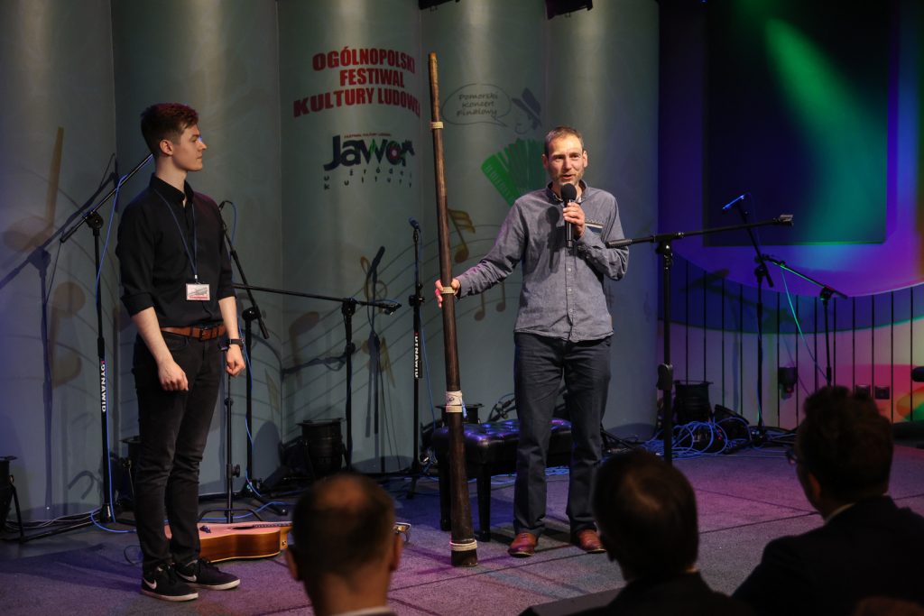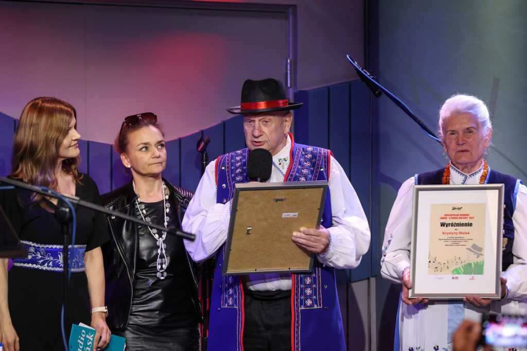 – Czuję się tu, przebywając wśród takich wspaniałych artystów zajmujących się twórczością, jak w domu. To są ludzie, którzy mają odwagę mówić i robić to, co czują w duszy, aby pokazać swoją pasję, aby pokazać siebie. To cudowne, że mogłem się w takim gronie znaleźć. Do momentu udziału w tym konkursie w ogóle nie myślałem o sobie jako o twórcy ludowym. O tym, że jestem zgłoszony, dowiedziałem się w momencie, gdy dostałem zaproszenie na uroczystą galę. Patrząc z perspektywy kogoś, kto trochę jest tekściarzem i trochę zajmuje się poezją nie mogę oprzeć się wrażeniu, że ta poezja i twórczość ludowa się przenika; nie wiadomo, gdzie kończy się jedno, a zaczyna drugie. Swoimi odczuciami, swoim wnętrzem i swoimi przeżyciami trzeba się dzielić, bo wszyscy jesteśmy bogaci i wszyscy mamy coś do przekazania – mówił Janusz Świątkowski.