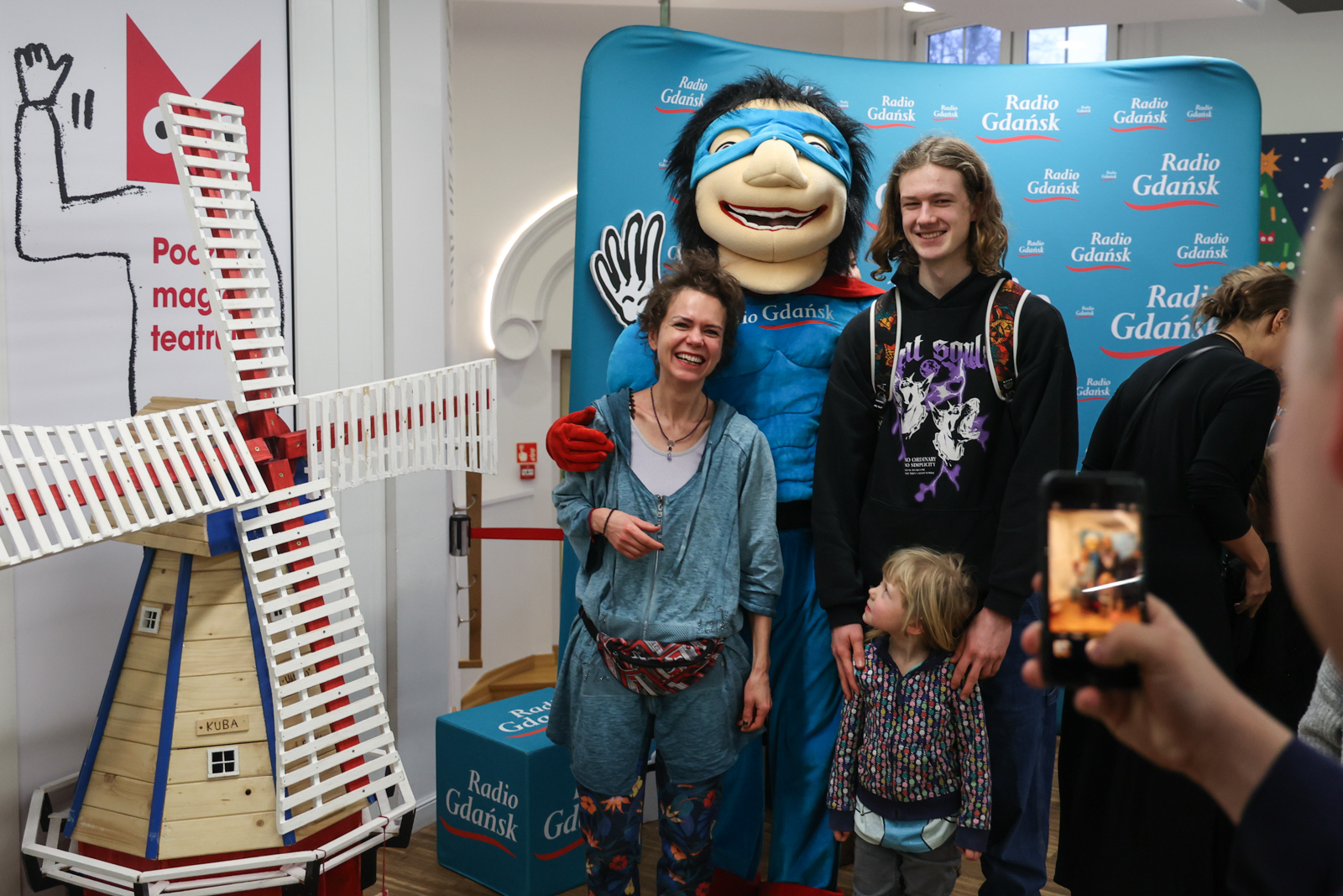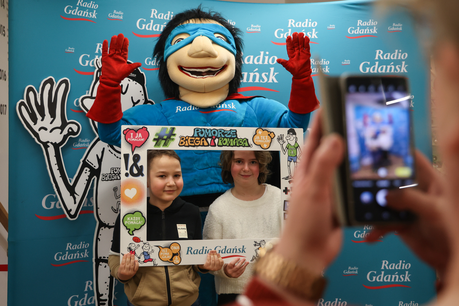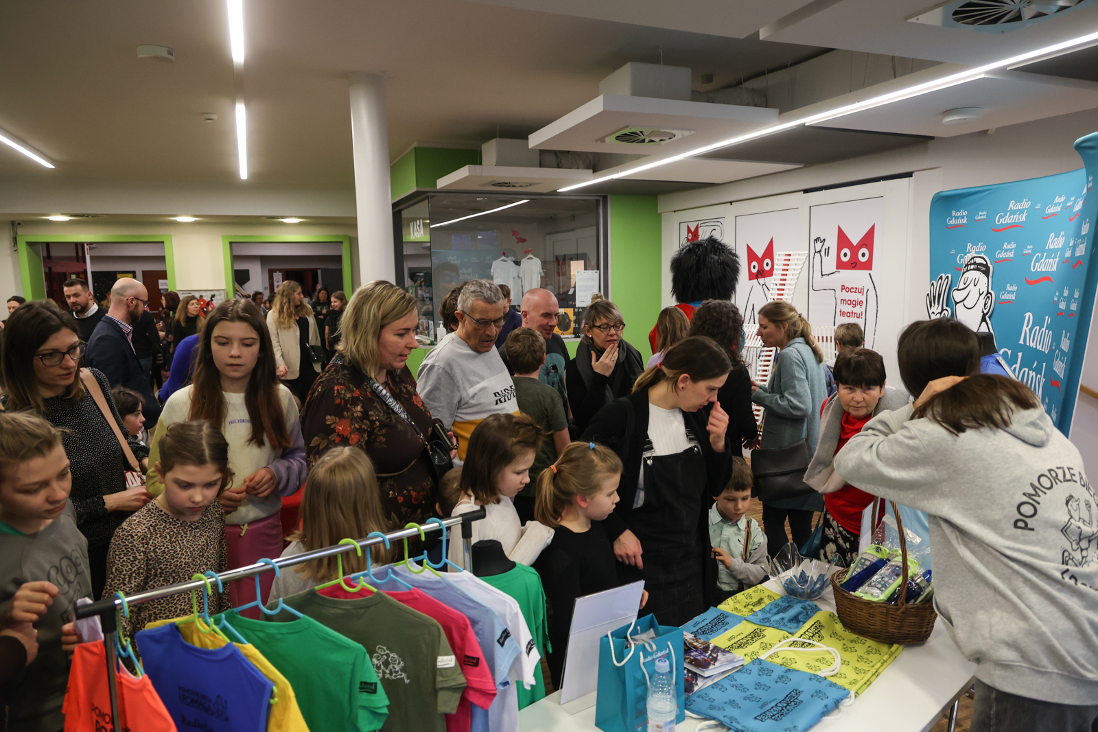 Pół godziny przed spektaklem była okazja, by wesprzeć naszą akcję charytatywną „Pomorze Biega i Pomaga”. Na specjalnie przygotowanym stoisku w Teatrze Miniatura udostępniliśmy charytatywne koszulki i kolorowanki. Można przybić piątkę radiowej maskotce lub zrobić sobie zdjęcie na tzw. ściance.