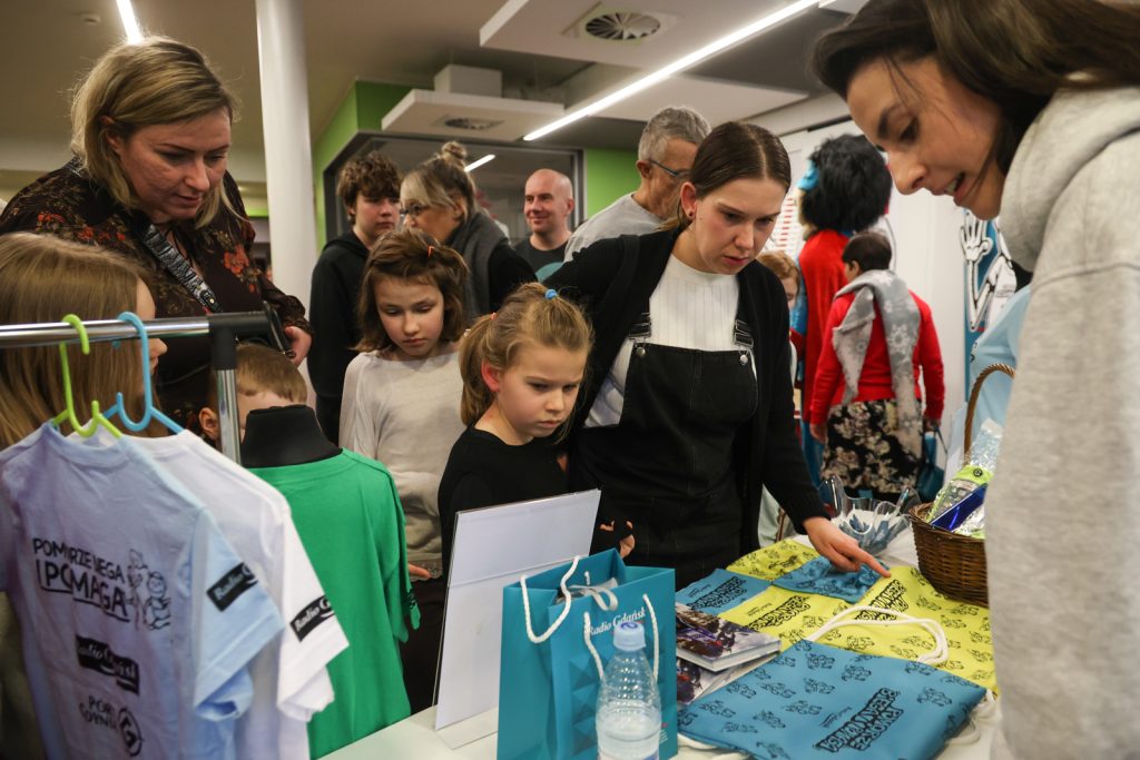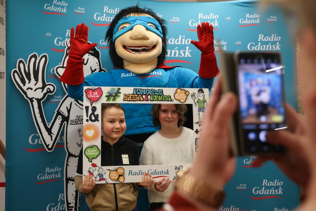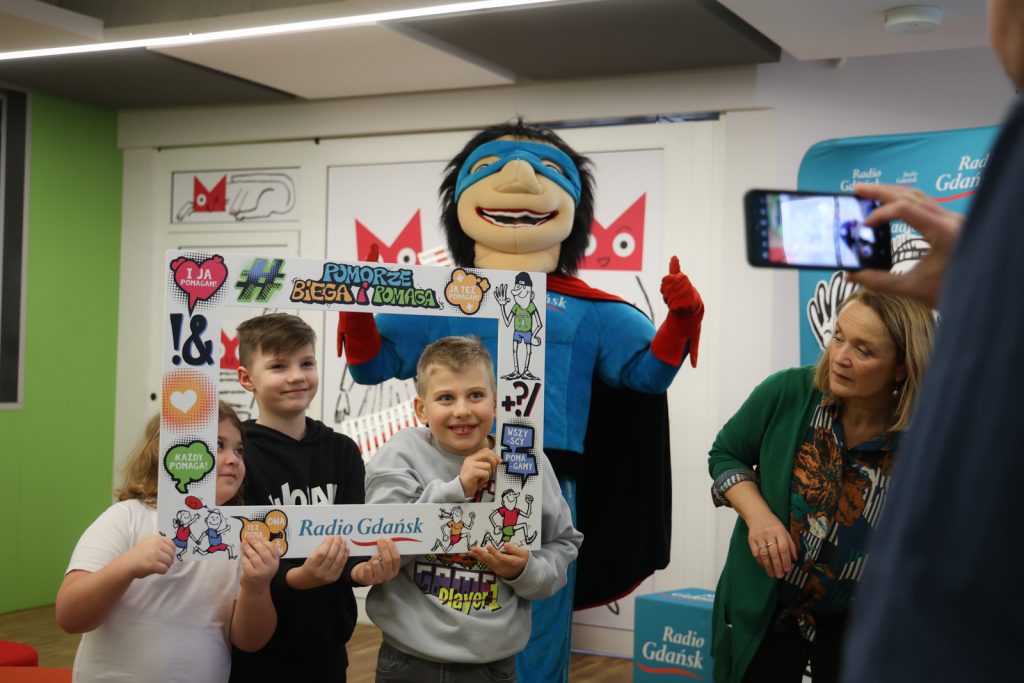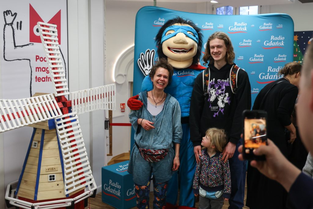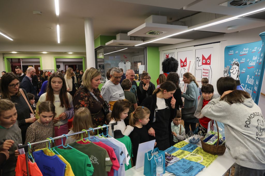 Pół godziny przed spektaklem była okazja, by wesprzeć naszą akcję charytatywną „Pomorze Biega i Pomaga”. Na specjalnie przygotowanym stoisku w Teatrze Miniatura udostępniliśmy charytatywne koszulki i kolorowanki. Można przybić piątkę radiowej maskotce lub zrobić sobie zdjęcie na tzw. ściance.