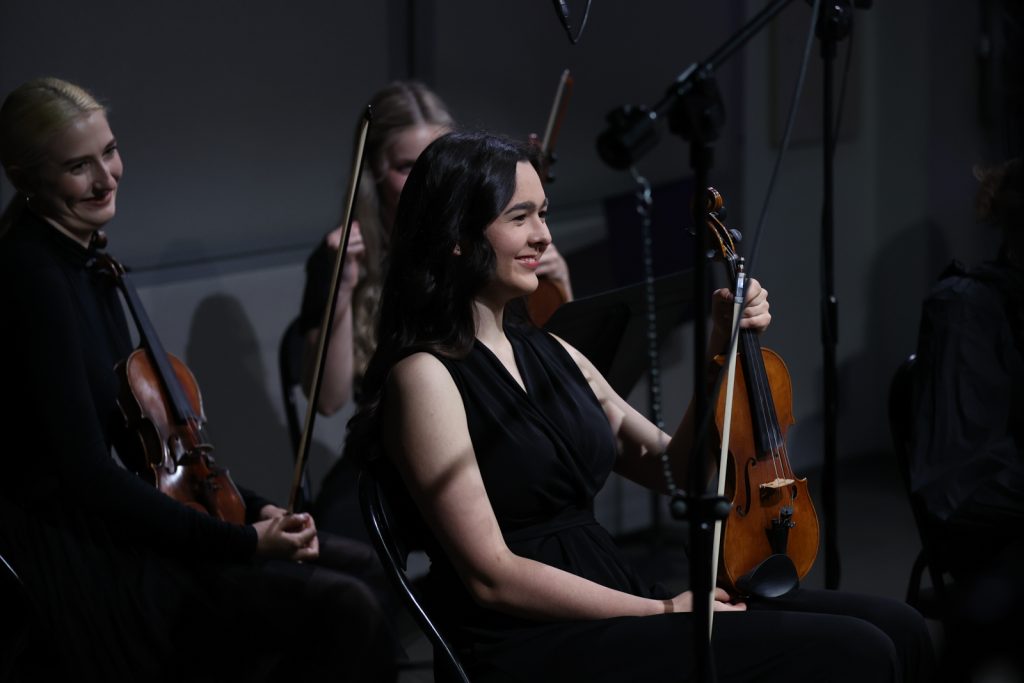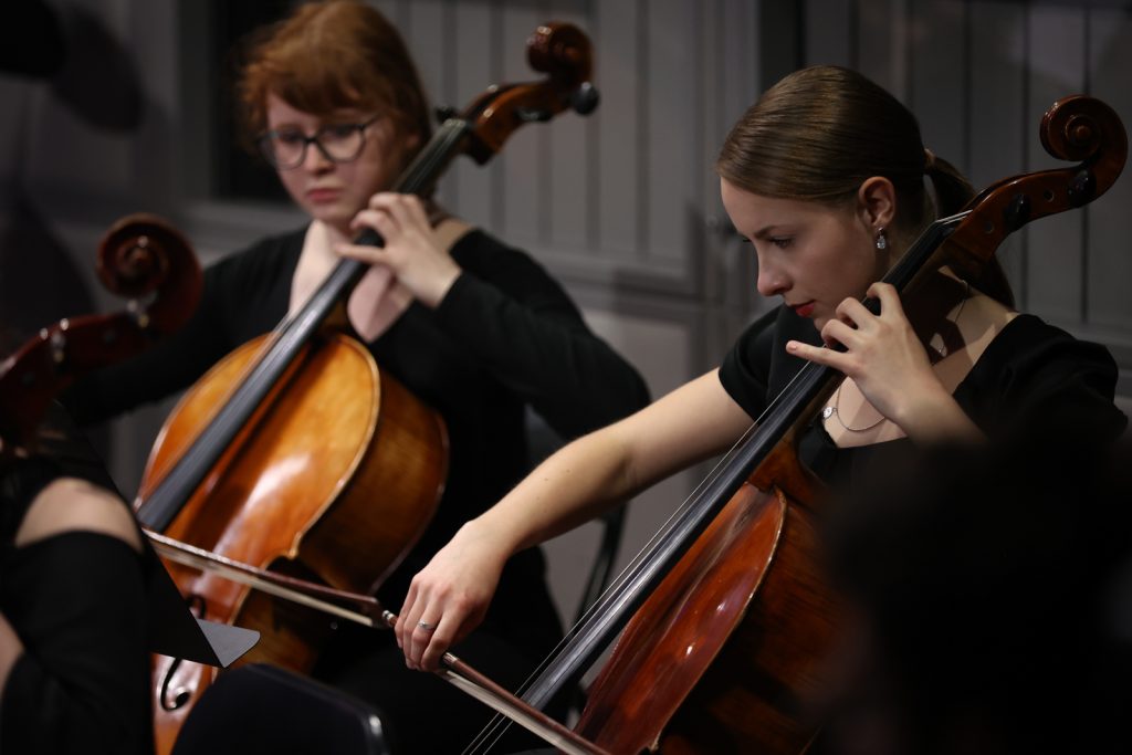 Koncert poprowadził Konrad Mielnik, który żartobliwie nazwał naszych gości „orkiestrą księżniczek i książąt”. Muzycy zaprezentowali utwór „Toccata per archi Hommage à Karol Lipiński na motywach Rondo alla Polacca op. 7”, skomponowany przez Annę Rocławską-Musiałczyk z okazji 75. urodzin maestro Konstantego Andrzeja Kulki. Zagrali też „Koncert na orkiestrę smyczkową” Grażyny Bacewicz i „Orawę” Wojciecha Kilara.