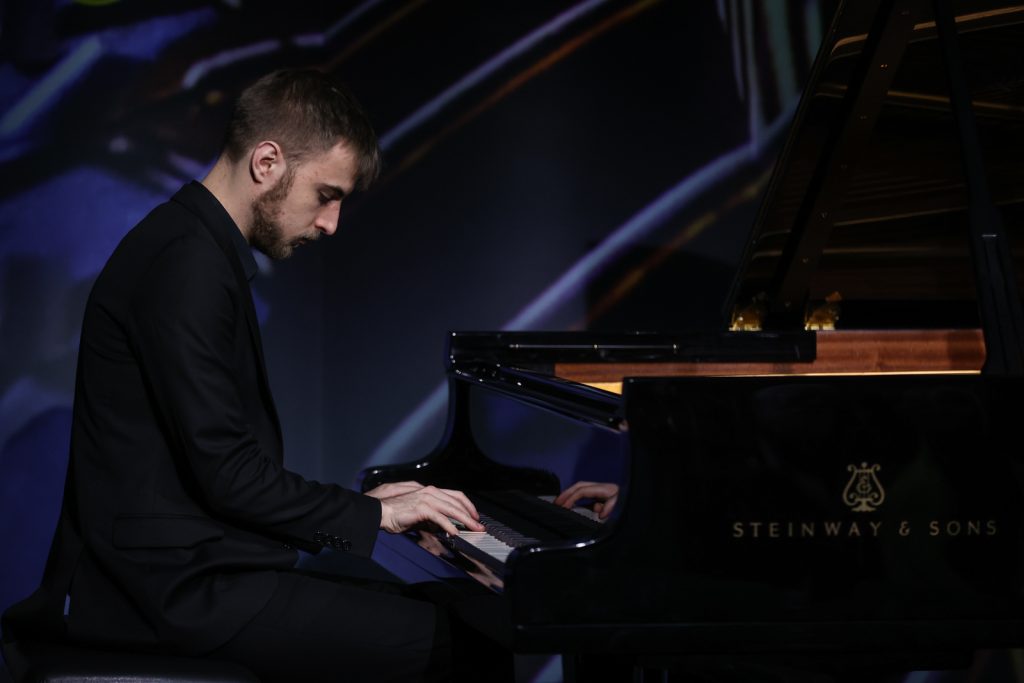 Jako pierwszy zagrał dla naszych słuchaczy Mateusz Maciołek, student Akademii Muzycznej imienia Stanisława Moniuszki w Gdańsku w klasie fortepianu prof. dr. hab. Waldemara Wojtala i mgr. Piotra Pawlaka. Jest laureatem międzynarodowych i ogólnopolskich konkursów pianistycznych, koncertował w Polsce, w Niemczech, na Węgrzech i na Litwie. Jako solista współpracował z Orkiestrą Symfoniczną Filharmonii Opolskiej, Orkiestrą Kameralną Filharmonii Narodowej i Lwowską Orkiestrą Kameralną. Wielokrotnie występował na antenach Radia Gdańsk. Regularnie bierze udział w mistrzowskich kursach pianistycznych. Podczas koncertu zagra „Sonatę h-moll K.87” i „Sonata D-dur K.29” Domenica Scarlattiego, „Rondo G-dur op. 51 nr 2” Ludviga van Beethovena, „Etiudę C-dur op. 10 nr 1” Fryderyka Chopina, „Etiudę a-moll” z cyklu „Grandes études de Paganini”, S.141 Ferenca Liszta, a na koniec – „Mazurek gis-moll op. 33”, „Mazurek D-dur op. 33” i „Mazurek C-dur op. 33” Chopina.
