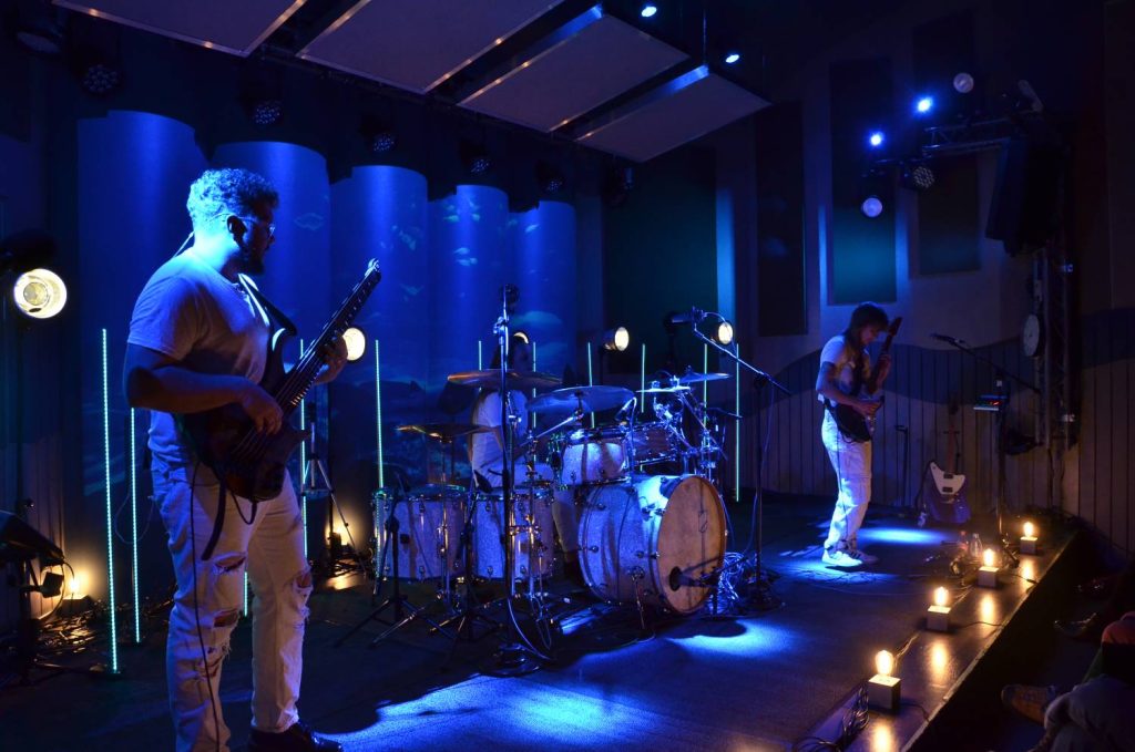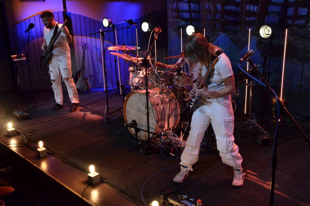 Rockowe trio Haasta na scenie Studia Koncertowego Radia Gdańsk im. Janusza Hajduna (fot. Radio Gdańsk/Piotr Puchalski)