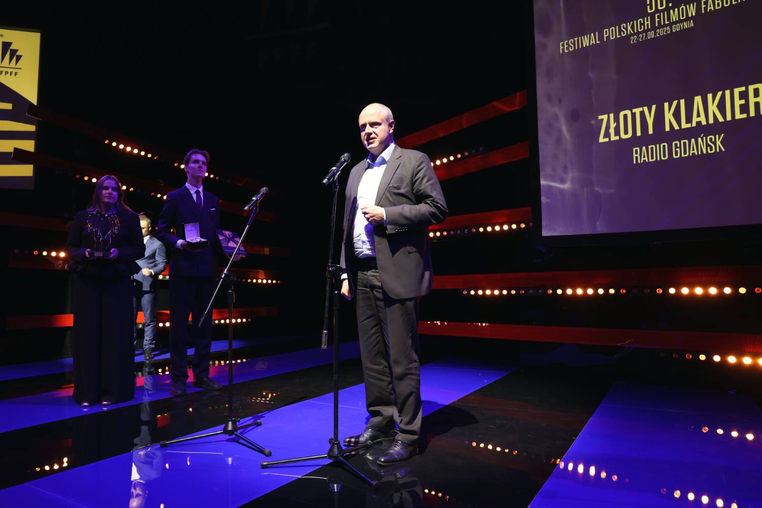 Kierujący Radiem Gdańsk mecenas Krzysztof Lodziński przemawia na Młodej Gali 50. FPFF w Gdyni, 26.09.2025 r. (fot. Radio Gdańsk/Piotr Puchalski)