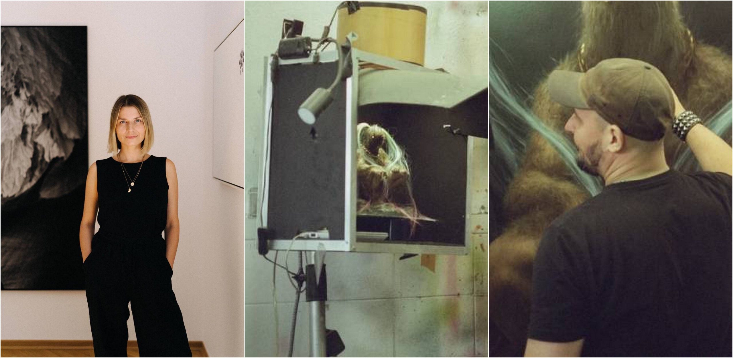 Od lewej: dyrektorka i kuratorka Agata Abramowicz, artysta Marcin Zawicki przy pracy nad wystawa "Megahit" (fot. przyplyw.com)