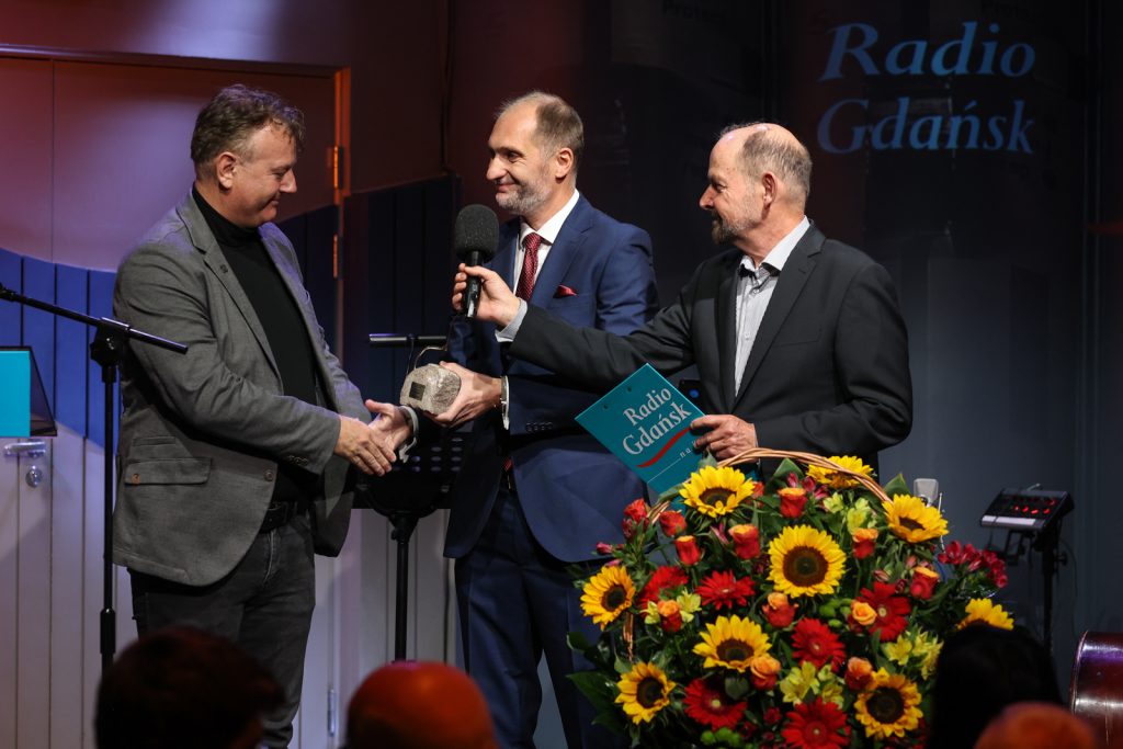 – Jestem niesamowicie zaszczycony i wzruszony tym, że mogę tutaj stać dzisiaj i odebrać tak prestiżowe wyróżnienie. To moje wzruszenie jest też spowodowane tym, że od zawsze jestem związany z Gdańskiem . Tutaj się urodziłem, tutaj dorastałem, tutaj zdobywałem swoje wykształcenie, przeżywałem piękne i czasami mniej piękne chwile, tu też założyłem rodzinę i także z Gdańskiem związałem swoje życie zawodowe. To szczególnie wzruszający moment, bo także Radio Gdańsk, które jest swoistym pomnikiem Gdańska, towarzyszyło mi przez całe życie. Nigdy się nie spodziewałem, że kiedyś nadejdzie taki moment, że tutaj, z tego miejsca, będę odbierał takie wyróżnienie. To jest dla mnie ogromny zaszczyt. Korzystając z okazji, chciałem też bardzo serdecznie podziękować wszystkim pracownikom, współpracownikom, wszystkim osobom, które współtworzą Radio Gdańsk za fantastyczną pracę, za to, że przez te wszystkie lata tak fantastycznie edukujecie, informujecie i bawicie swoich wiernych słuchaczy, do których się zaliczam. Prosimy o jeszcze, ja w imieniu słuchaczy proszę o jeszcze wiele, wiele tych wspaniałych lat. Dziękuję bardzo – wypowiadał się Michał Ossowski.