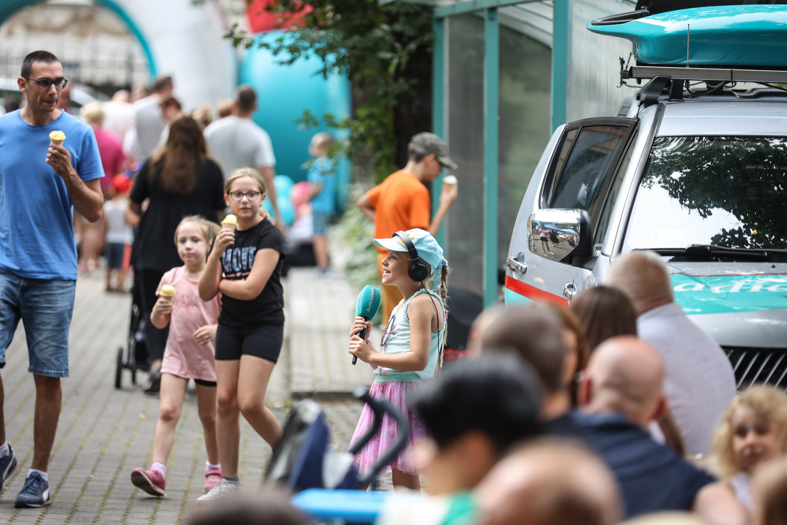 – Na parkingu jest gorąco i przyjemnie dzięki tym, którzy do nas przychodzą i korzystają z atrakcji. Podpowiadam, że do godziny 15:00 będą jeszcze inne konkursy. Do zdobycia są bardzo ładne nagrody. Są radiowe krówki, przenośne głośniki, kubki i puzzle w edycji trójmiejskiej, a także notesy. Frekwencja jest ogromna, jest dużo osób. Wiem, że kolejki mogą przerażać, natomiast jest to bardzo przyjemna kolejka, bo efekty też są bardzo przyjemne. Dzieje się bardzo dużo dobrego i jest niesamowita energia. Przypomniałam sobie, że właśnie zrobiliśmy ten konkurs i tak dużo radości się wydarzyło, bo było dużo fajnych piosenek i były nawet trudne piosenki, nawet ja nie znałam jednego wykonawcy. Nawet mnie można jeszcze zaskoczyć, co mnie bardzo cieszy. Moja encyklopedia muzyczna cały czas się jednak rozrasta – przyznała.