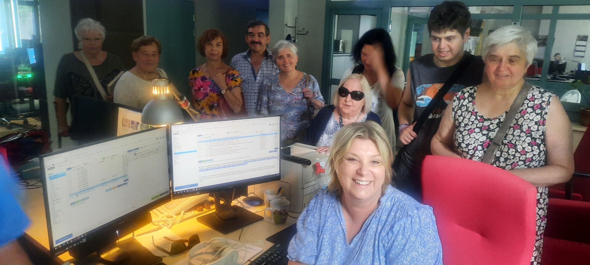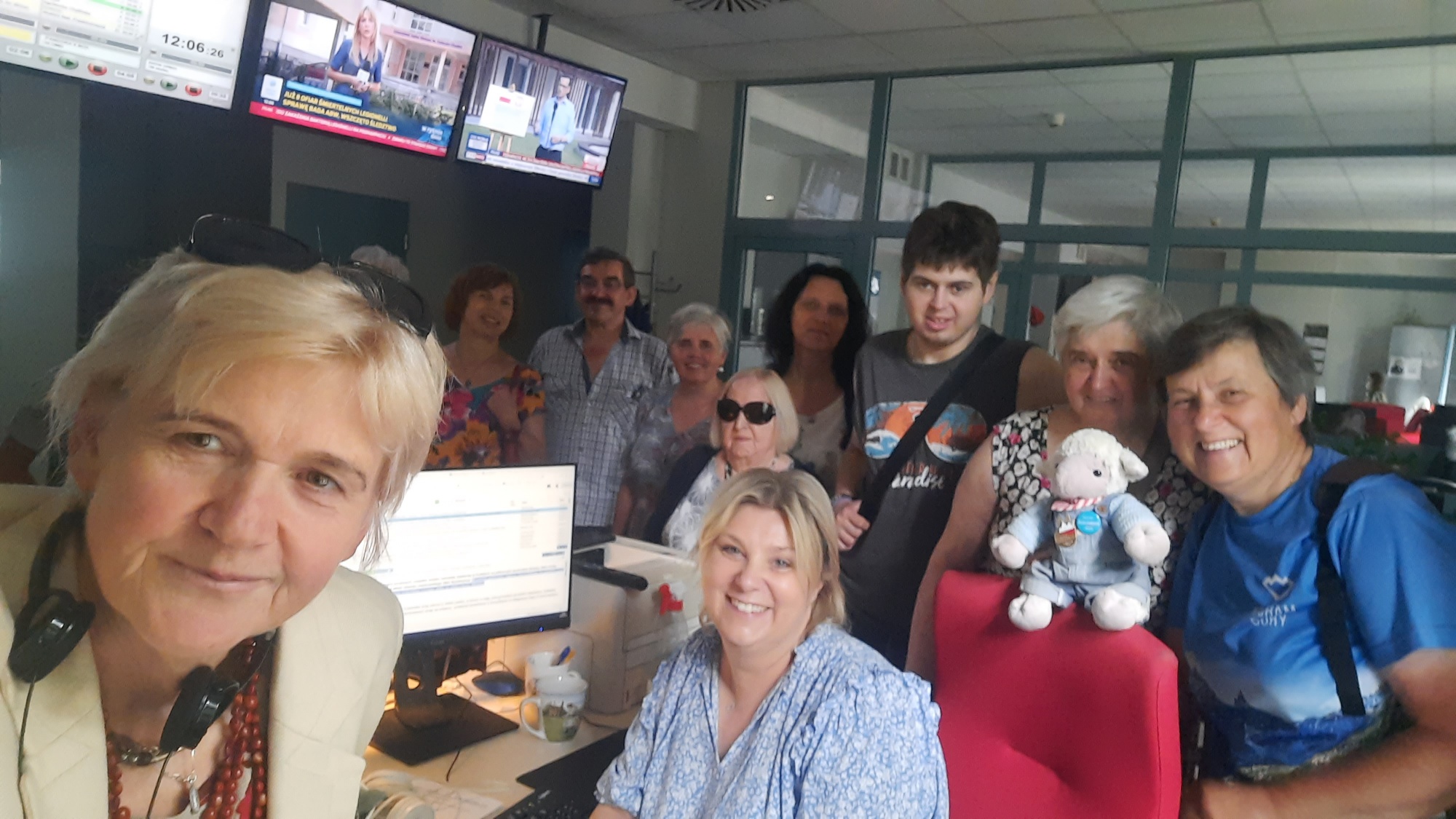 Koledzy z redakcji sportowej zaprosili wszystkich uczestników do wspólnej zabawy z piłką do koszykówki, a seniorzy mogli porozmawiać z redaktor Anną Rębas prowadzącą audycję „Srebrne Pokolenie” – zwiedzili też naszą redakcję, w tym studio emisyjne: