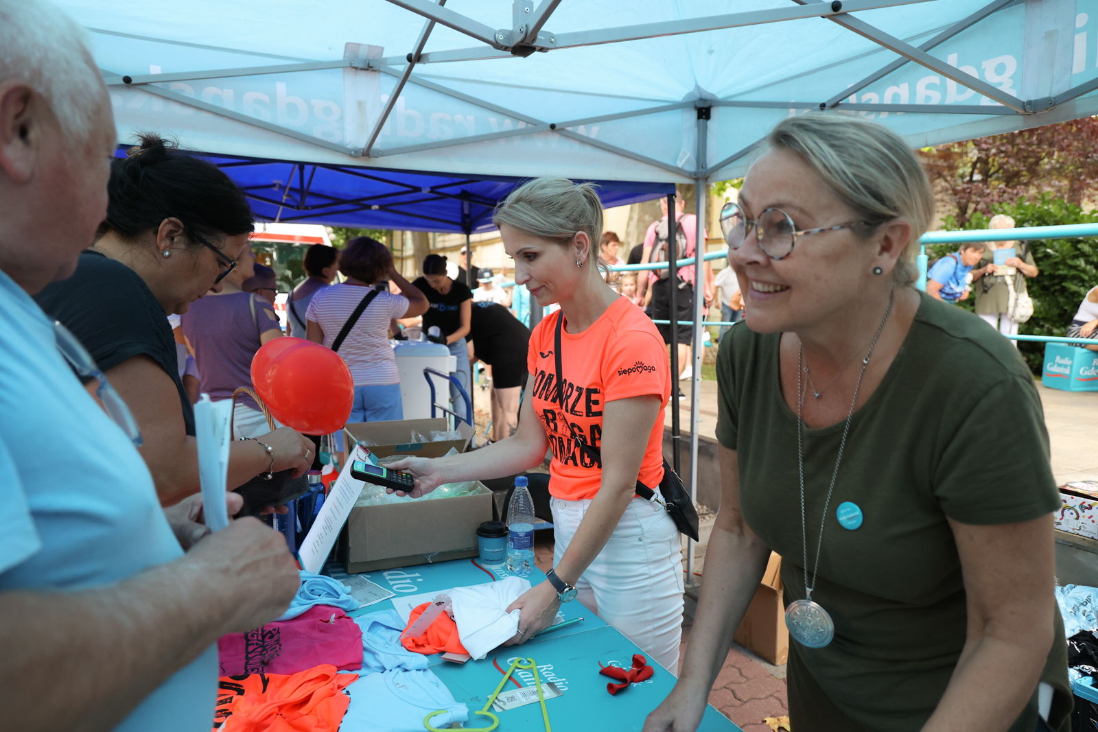 Nie zabrało namiotu naszej radiowej akcji charytatywnej „Pomorze Biega i Pomaga”. Na stoisku znalazły się koszulki, czapeczki, plecaki i inne sportowe gadżety. Dochód z ich sprzedaży zostanie przekazany na rehabilitację 29-letniego Bartka, honorowego krwiodawcy i ratownika medycznego.