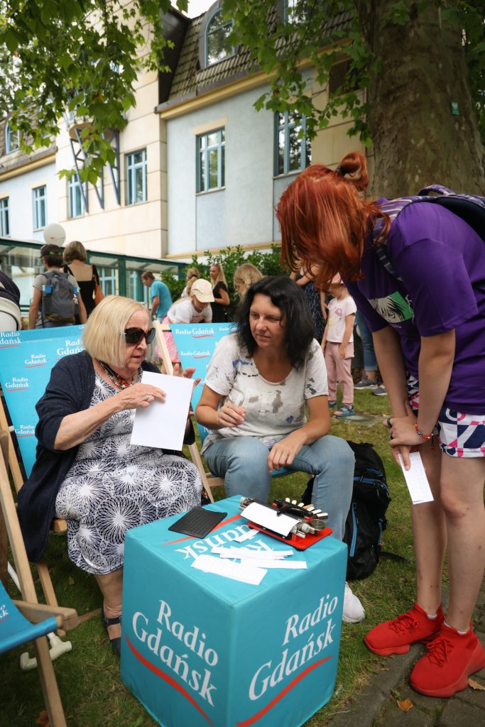 Od rana słuchacze audycji „Srebrne Pokolenie” razem z prowadzącą audycję Anną Rębas czekali na zwiedzenie naszych radiowych zakamarków. Zanim weszli do budynku, czekała na nich niespodzianka – 86-letnia pani Helena Urbaniak z Gdyni, stała słuchaczka audycji, postanowiła nauczyć gości festynu alfabetu Braille’a.