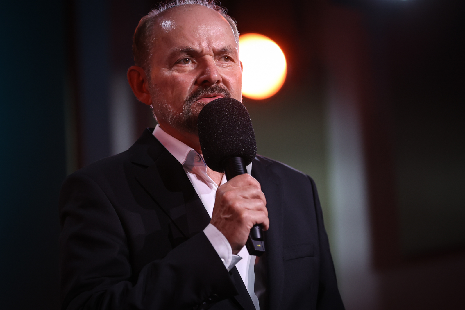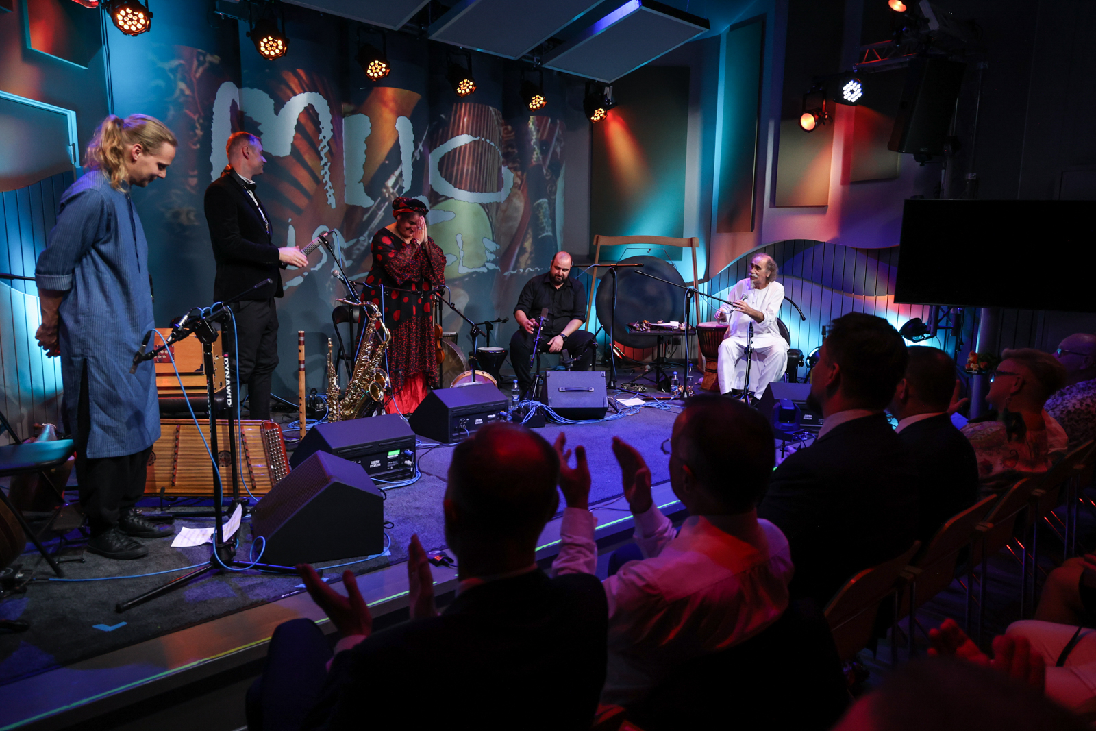 – Gratuluję radiu urodzin, dziękując za zaproszenie, gratulując też wszystkim laureatom wzystkich nagród, które tu dzisiaj, jak co roku, odebrali. Poproszono mnie, żebym zamienił się w konferansjera, czego nigdy w życiu nie robiłem, ale z powodu tego, kogo państwo za chwilę zobaczycie i usłyszycie, zgodziłem się wykonać to dzieło, które jest dla mnie debiutem. Pierwszy raz usłyszałem go na początku lat 80. Starsi pamiętają w Gdańsku kino Leningrad na ulicy Długiej i klub studencki nad nim. Tam wystąpił kultowy, legendarny zespół Osjan, którego muzykę podziwiałem. Wtedy widziałem i słyszałem go po raz pierwszy. To też założyciel czy współzałożyciel innych powszechnie znanych zespołów, jak Maanam, Izrael, Voo Voo, ale osobiście poznałem go osiem lat temu, kiedy rozpocząłem nową edycję pracy w Ministerstwie Kultury i Dziedzictwa Narodowego i dowiedziałem się, że istnieje w Warszawie Festiwal Greków Polskich i że ten festiwal ma jakieś kłopoty finansowe, ne może skolekcjonować pieniędzy i może się nie odbyć. Poprosiłem organizatora tego festiwalu, a okazało się, że to bohater naszej opowieści; wtedy się poznaliśmy. Oczywiście festiwal się odbył i od tego czasu, już nie wiem ile, zorganizowaliśmy wspólnie kilkanaście festiwali: Festiwale Greków Polskich, Festiwal Mniejszości Narodowych i Etnicznych, który wspólnie wymyśliliśmy, Festiwal Muzyki Świata, trochę ekumeniczny Festiwal Współistnienie. Tych festiwali było naprawdę dużo, bo okazało się, że nasz bohater jest świetnym menedżerem, organizatorem, człowiekiem, który ma rozległe kontakty światowe i potrafi sprowadzić do Polski wybitnych artystów. Dzisiaj, szanowni państwo, usłyszycie niezwykłą muzykę jego zespołu. Usłyszycie też nowe kompozycje, które nigdy nie były grane, a więc macie ten zaszczyt, że usłyszycie muzyczne premiery, a jest to muzyka, jak się pewnie szybko zorientujecie, penetruje wrażliwości muzyczne różnych stron świata, ale jest tam też bardzo dużo jazzu oraz niezwykłej dynamiki i rytmiki – wyliczał.