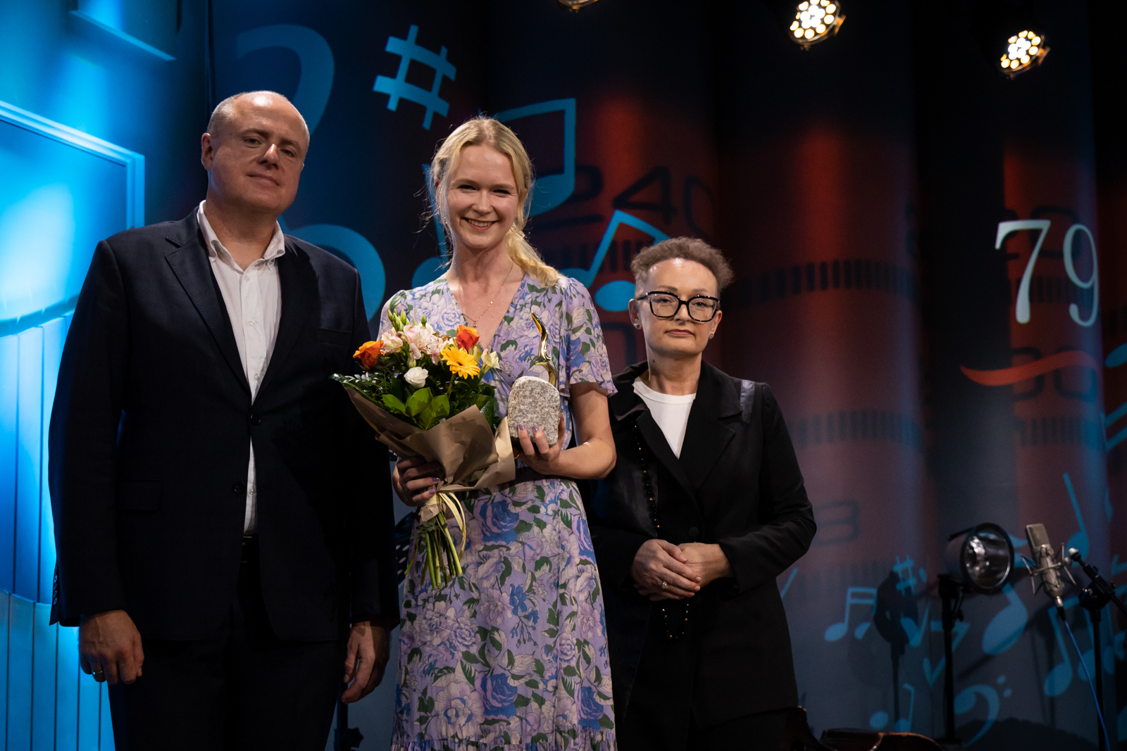 Katarzyna Hirsz odbiera nagrodę z rąk Joanny Matuszewskiej i Krzysztofa Lodzińskiego (fot. Radio Gdańsk/Roman Jocher)
