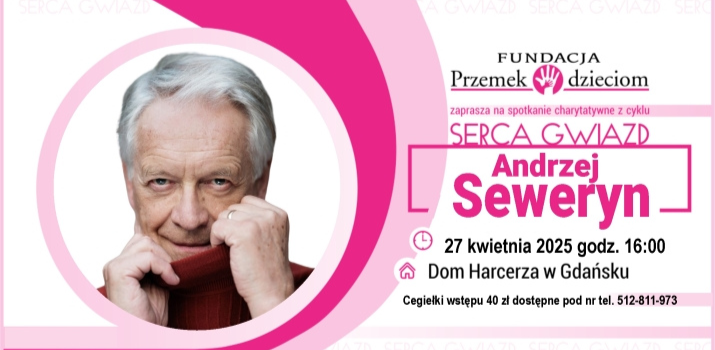 Fundacja Przemek Dzieciom zaprasza na kolejną edycję dwunastego sezonu charytatywnego cyklu SERCA GWIAZD! Dom Harcerza w Gdańsku, 27 kwietnia 2025 r., godz. 16:00.