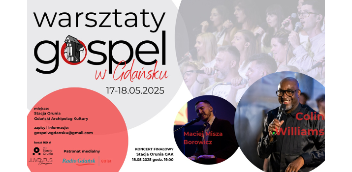 W dniach 17 – 18 maja 2025 r. w Stacji Orunia Gdańskiego Archipelagu Kultury odbędą się Warsztaty Muzyki Gospel, które poprowadzą Colin Williams oraz Maciej Misza Borowicz.