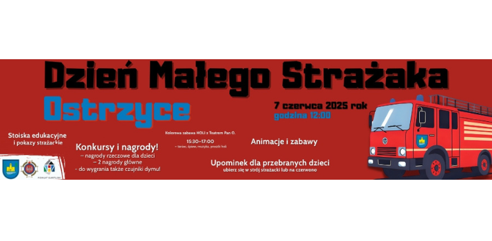 7 czerwca 2025 r. o godzinie 12:00 w Ostrzycach czeka nas wyjątkowe wydarzenie pełne emocji, zabawy i kolorów! Wójt Gminy Somonino, jednostki Ochotniczych Straży Pożarnych z terenu gminy, Gminny Ośrodek Kultury w Somoninie oraz Koła Gospodyń Wiejskich zapraszają na strażacką imprezę rodzinną, która odbędzie się tradycyjnie na parkingu przy Punkcie Informacji Turystycznej w Ostrzycach. Wydarzenie wspiera również Starosta Kartuski.
