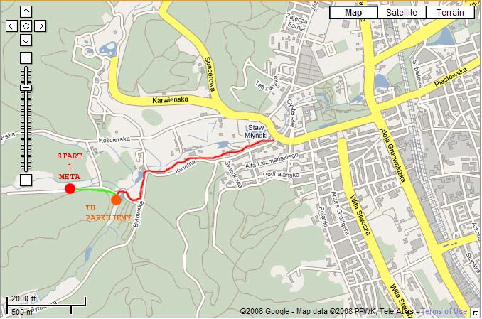 Biuro Zawodów znajdować się będzie na polanie oddalonej 300 metrów za Dworem Oliwskim, do którego prowadzą znaki z ul. Spacerowej. Samochody najlepiej zaparkować na parkingu naprzeciwko hotelu i dalej iść brukowaną dróżką w górę, która prowadzi aż na polanę – Mapa dojazdu