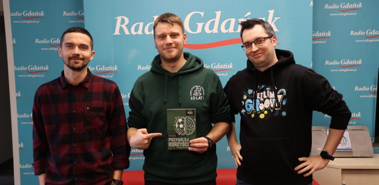 Autorzy książki "Przywilej korzyści": Marek Marciniak i Jan Marcinkowski oraz dziennikarz Radia Gdańsk Paweł Kątnik, dziennikarz (fot. Radio Gdańsk/Adrian Kasprzycki)