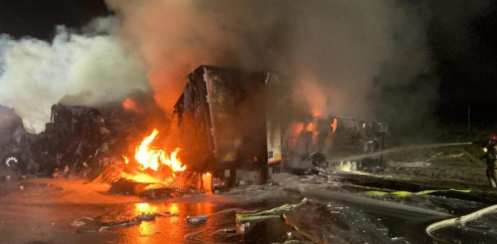 Na obwodnicy Trójmiasta, na nitce w kierunku Łodzi, na wysokości węzła Kowale, doszło do zderzenia czterech samochodów ciężarowych, w tym cysterny z paliwem. Jak podaje Wojewódzkie Stanowisko Koordynacji Ratownictwa, są wycieki paliwa na jezdni ze zbiornika zasilającego jeden z pojazdów (nie z naczepy cysterny).