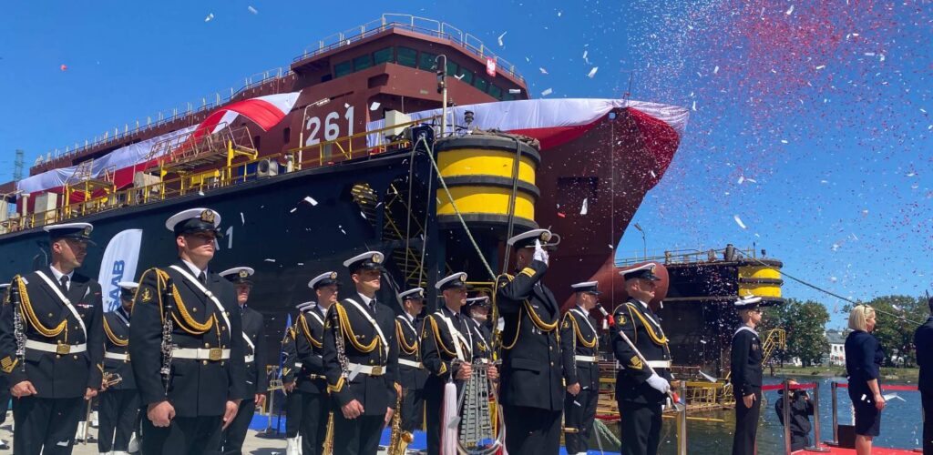 Ma 62 metry długości, 16 metrów wysokości i waży 1400 ton. W kanale portowym w Gdyni trwa transport megabloku dziobowego pierwszej fregaty typu Miecznik ze stoczni Crist do PGZ Stoczni Wojennej. Tam dziób przyszłego ORP Wicher zostanie dołączony do już skonstruowanego śródokręcia i rufy okrętu.
