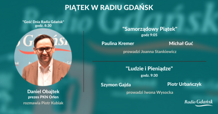 Poranek rozpoczniemy o godz. 8:30 audycją „Gość Dnia Radia Gdańsk”. Czy przejęcie polskiego górnictwa naftowego i gazownictwa przez PKN Orlen zagwarantuje Polsce bezpieczeństwo paliwowo-energetyczne i wpłynie na stabilność cen nośników energii? O tym Piotr Kubiak porozmawia z Danielem Obajtkiem, prezesem koncernu.