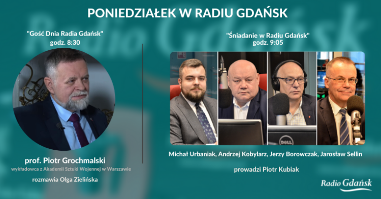 W poniedziałkowy poranek zapraszamy punktualnie o godz. 8:30 na rozmowę z „Gościem Dnia Radia Gdańsk”, którym będzie prof. Piotr Grochmalski, wykładowca w Instytucie Studiów Strategicznych na Wydziale Bezpieczeństwa Narodowego Akademii Sztuki Wojennej w Warszawie, korespondent wojenny w Afganistanie, Armenii i Czeczenii. Olga Zielińska porozmawia z nim o trwającej już ponad sto dni napaści zbrojnej Rosji na Ukrainę, kwestiach związanych z bezpieczeństwem naszego kraju oraz o tym, jak Rosja wykorzystuje propagandę i dezinformację jako element wojny.